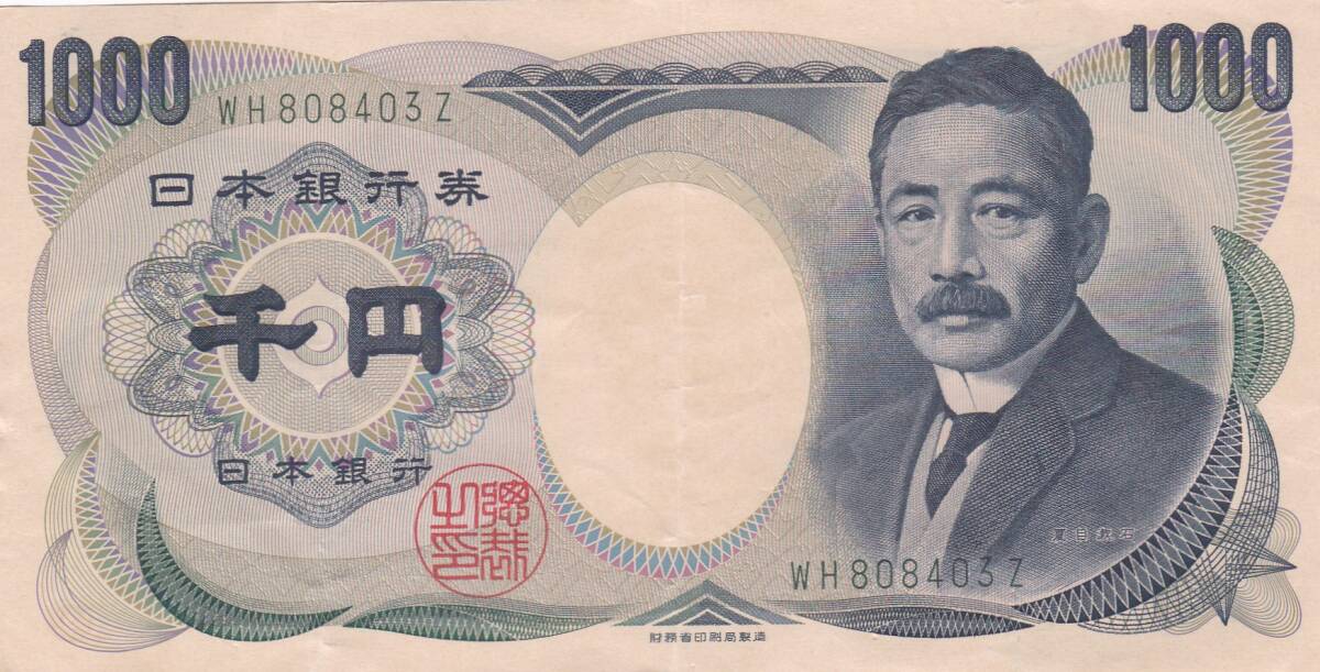 ◇夏目漱石1000円 財務省印刷局 緑色 2桁 並品★