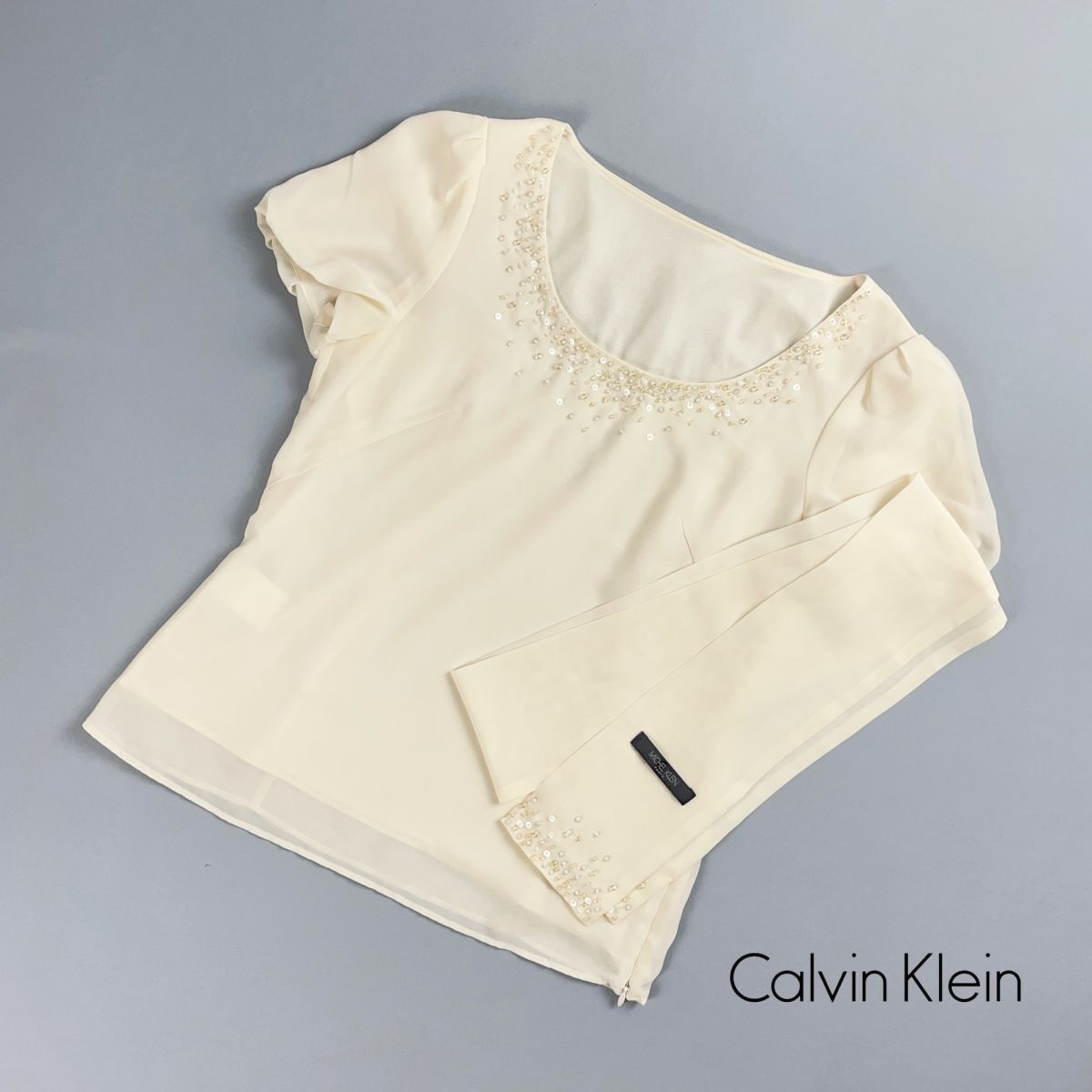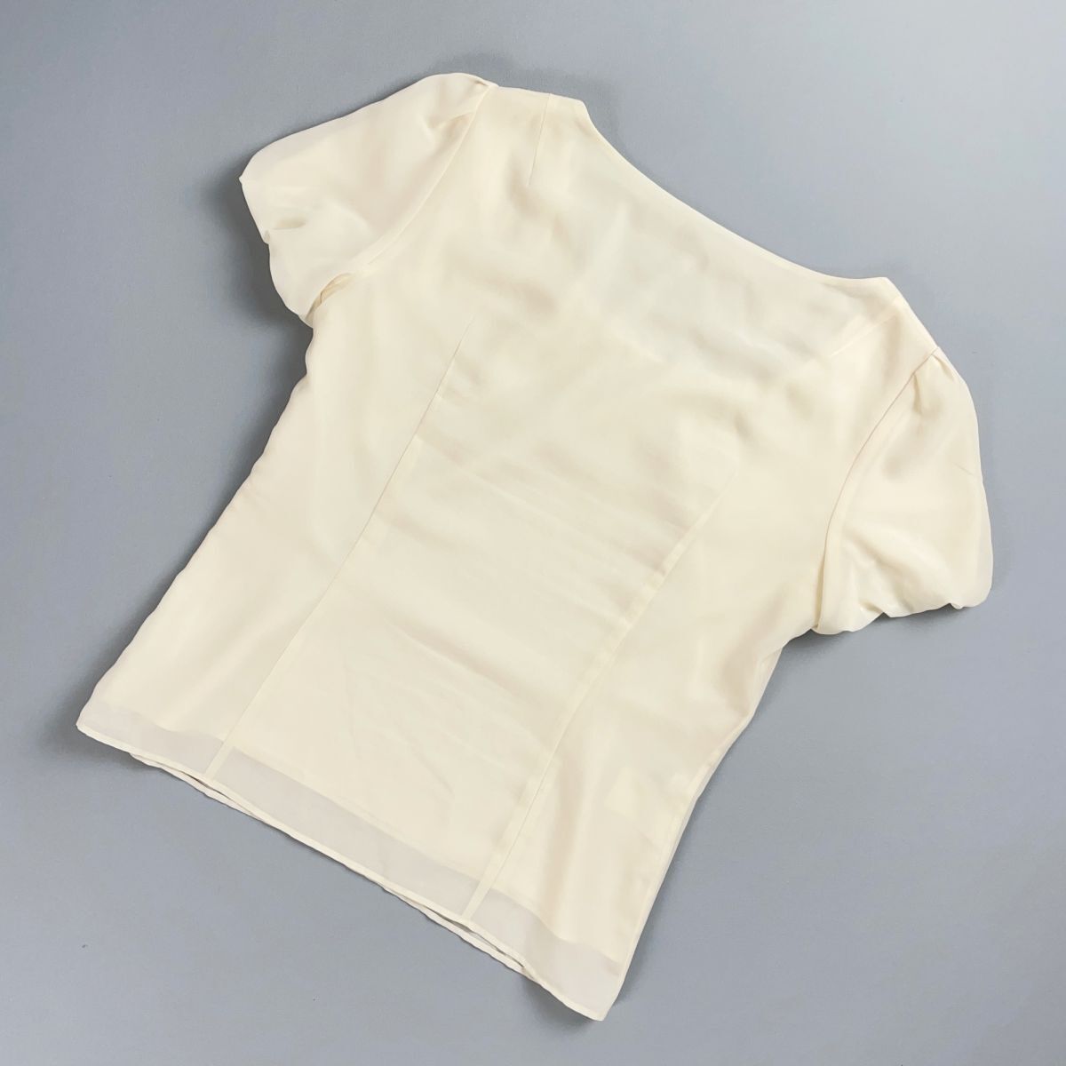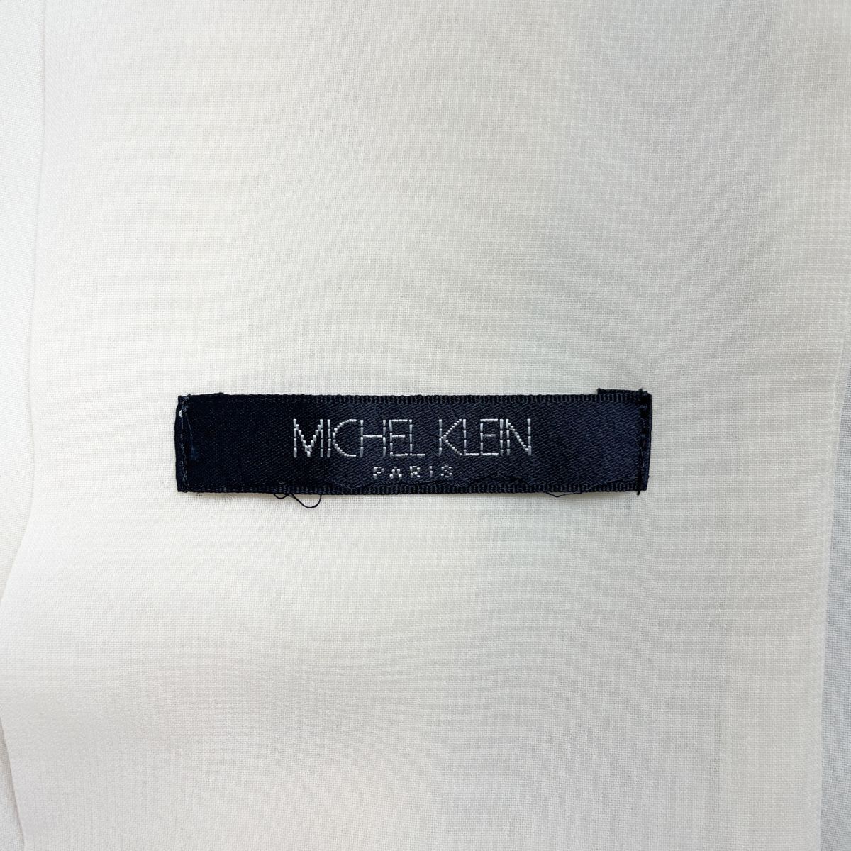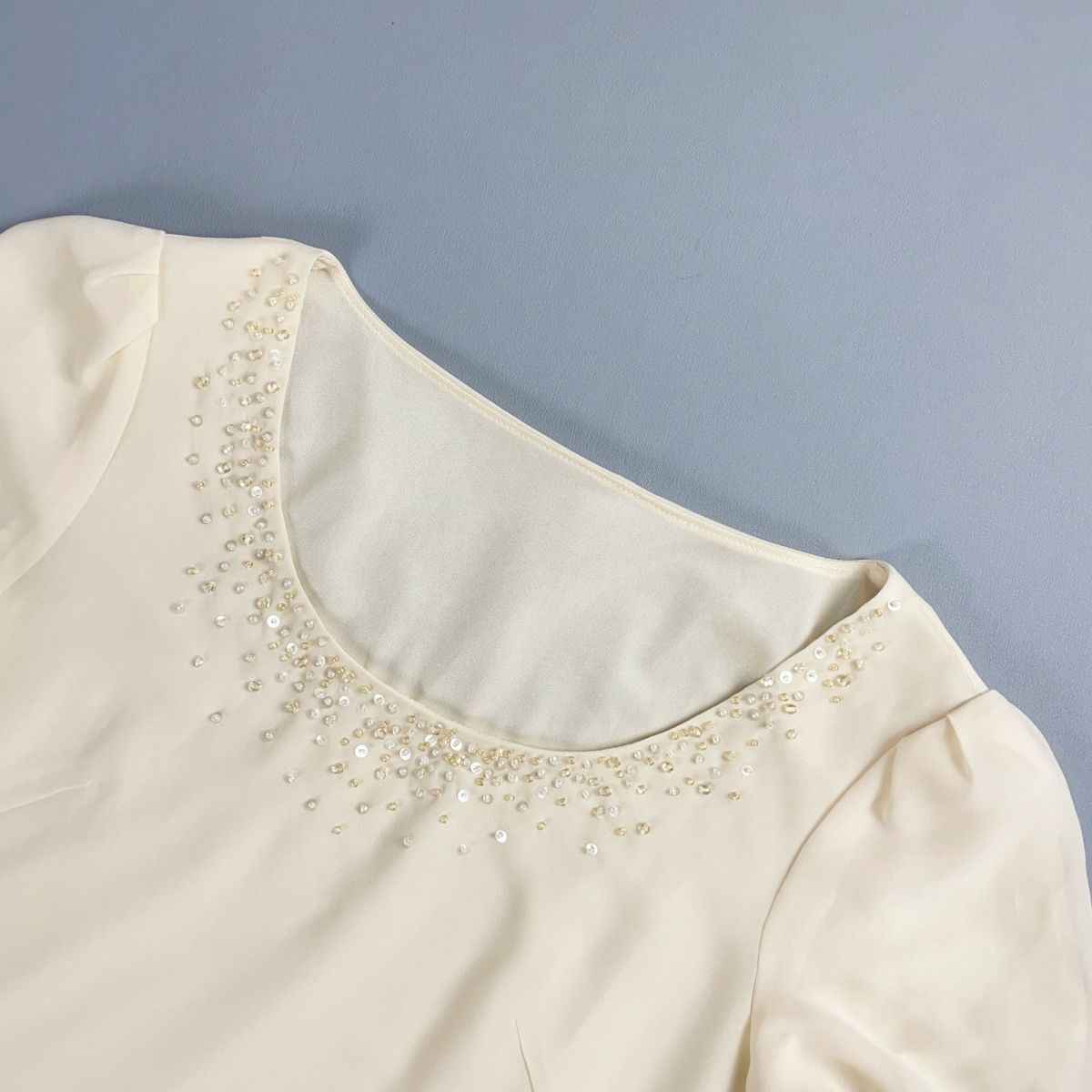 美品 MICHEL KLEIN ミッシェルクラン スパンコールデザインブラウス リボン帯付き トップス レディース ライトベージュ サイズ38*RC847