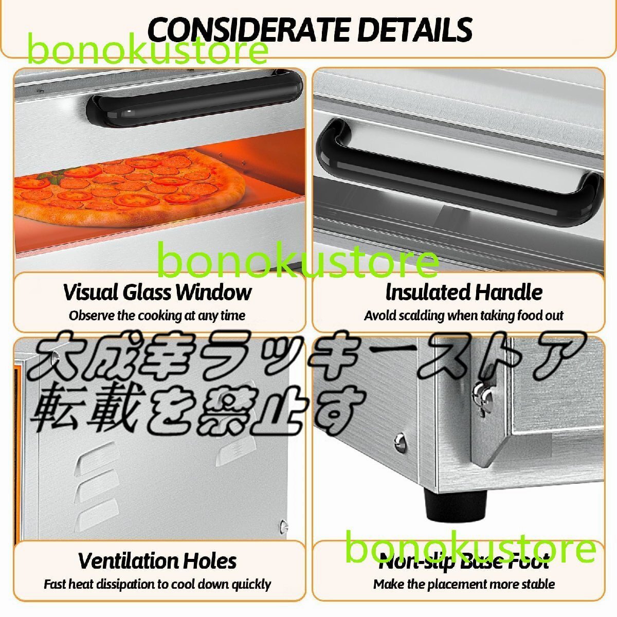 特徴:1.当社のピザオーブンでは、黄金色の茶色のパンのスライスをトーストしたり、柔らかくカリカリの生地のピザを短時間で調理したりできます。二層設計で、一度により多くの食べ物をトーストできます。2. 3 つの個別のノブで簡単に操作でき、温度を個別に制御できます。3.時間10?60分調整可能、異なる温度制御時間により、異なるおいしい食べ物を作ることができます。クラシックなステンレススチールのデザインを備えたこのオーブンは、カウンタートップにスタイリッシュなアクセントを加えます。仕様:名前:家庭用屋内ピザオーブン電圧:110v/220v 3000w温度: 50-350℃/120-622?温度制御時間: 10-60分材質: ステンレス鋼材質: ステンレス鋼電力: 3000W梱包重量: 約 34.2 kg/76 ポンド包装内容明細書:1×ピザオーブン二層1×英語マニュアル