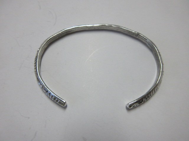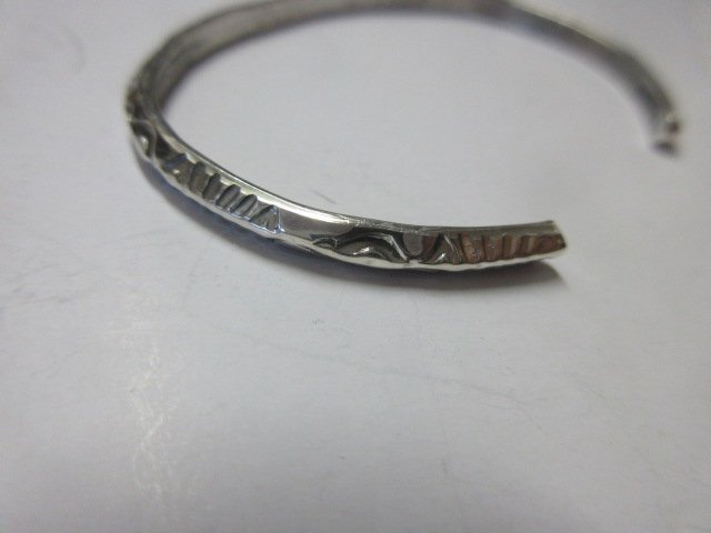 USA製インディアンシルバーバングル S トライアングル ナバホ族 ジョージア ★サイズ メンズSサイズ 手首回り17cmでフィットします シルバーだけの外周15cm弱 重さ8,9g 内径60mm 開口部30mm(調節可能) 幅3、5mm ★Goods アメリカ インディアン ナバホ族 新品 シルバーバングル 永遠に受け継がれていくインディアンジュエリーです 貴方のコレクションのお一つにいかがでしょうか! こちらのお品をプライスタグ付きのまま送らせて頂きます 材質 スターリングシルバー 製作者 Tahe ナバホ族 刻印 sterling Tahe 不明瞭 インディアンさんのハンドメイドですので、多少の変形等ございます。 どうぞよろしくお願いいたします。