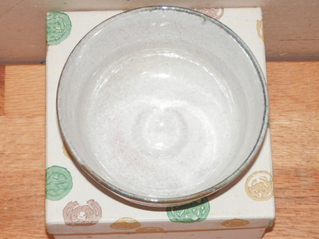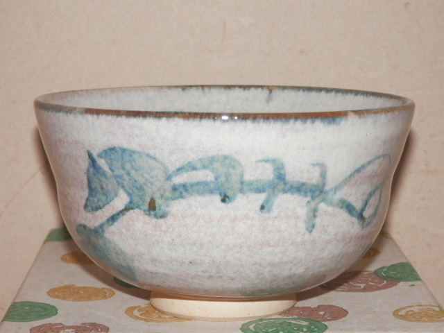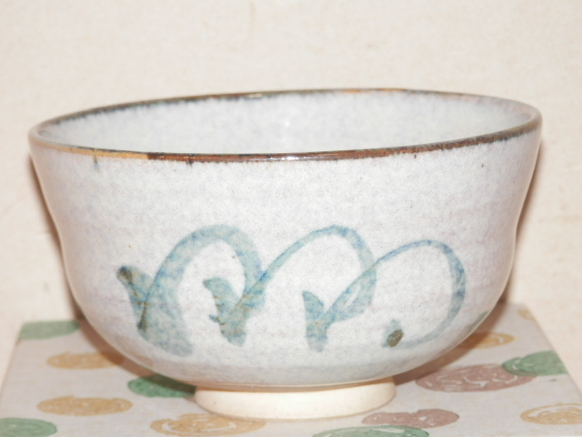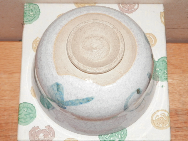 灰色茶碗に青い文様 無銘 直径11.7cm×高さ6.7cm 紙箱 茶道具 陶器 グレー釉
