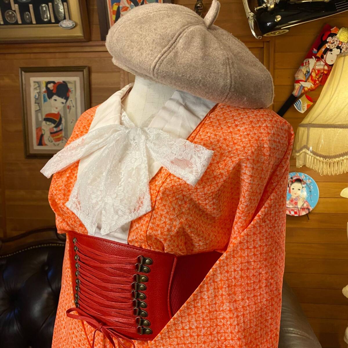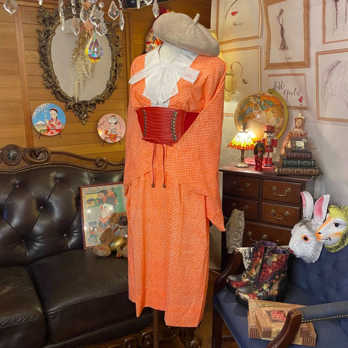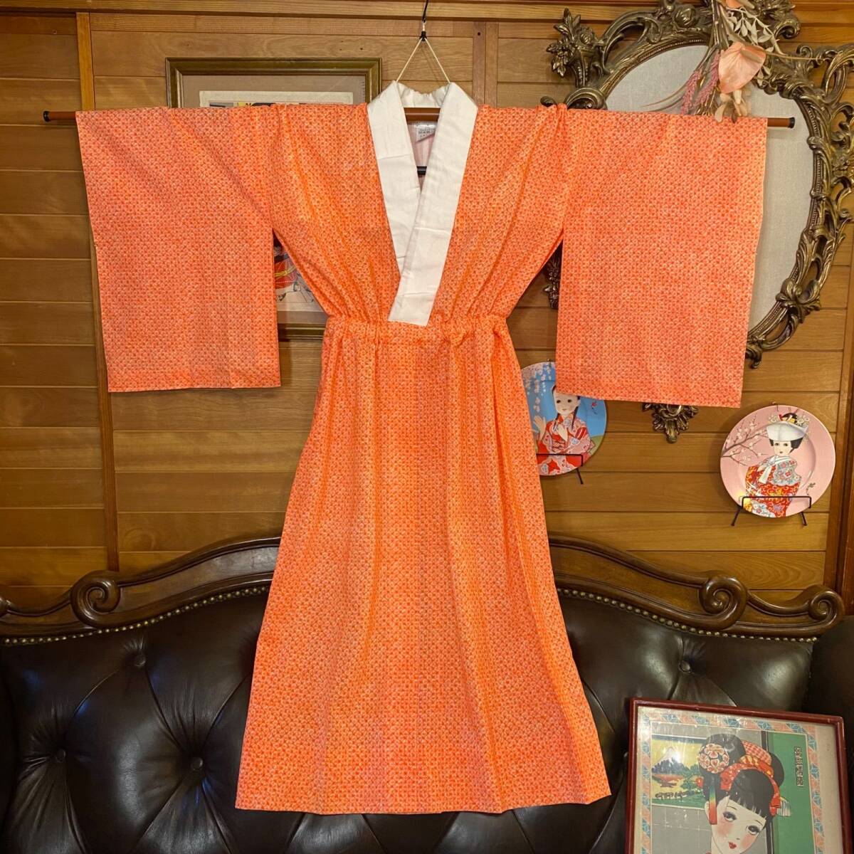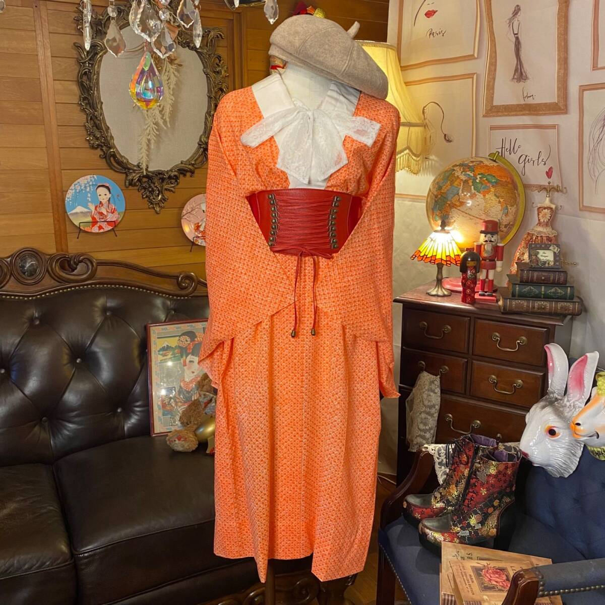 【 和洋折衷 レトロ 古着 長襦袢 着物 和 モダン ハンドメイド リメイク ワンピース ドレス LJW-2】