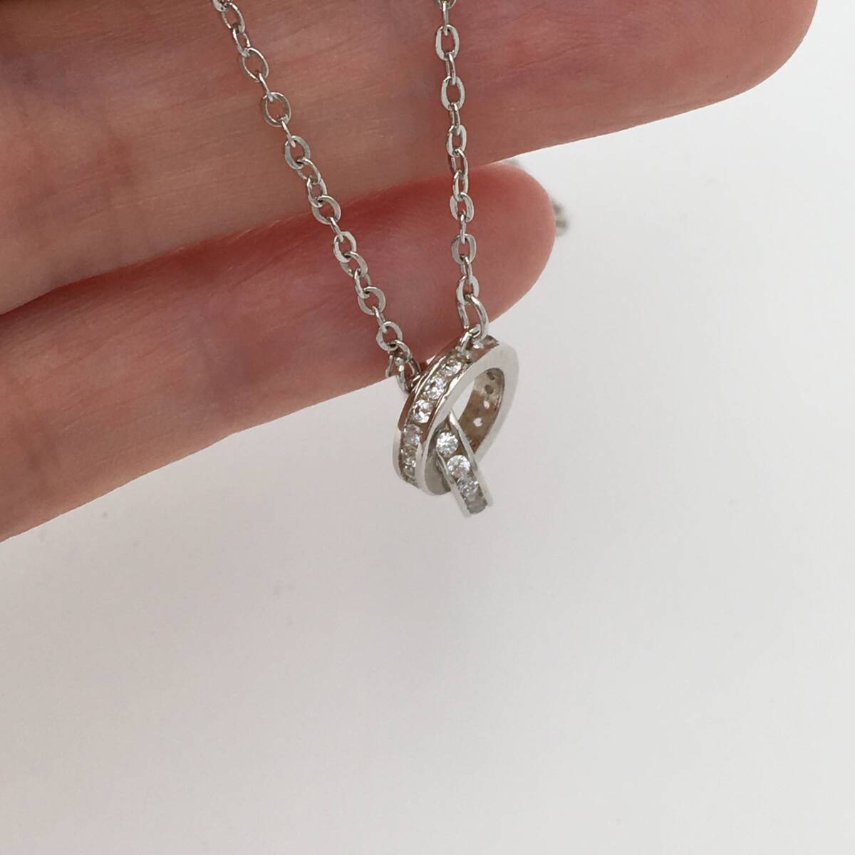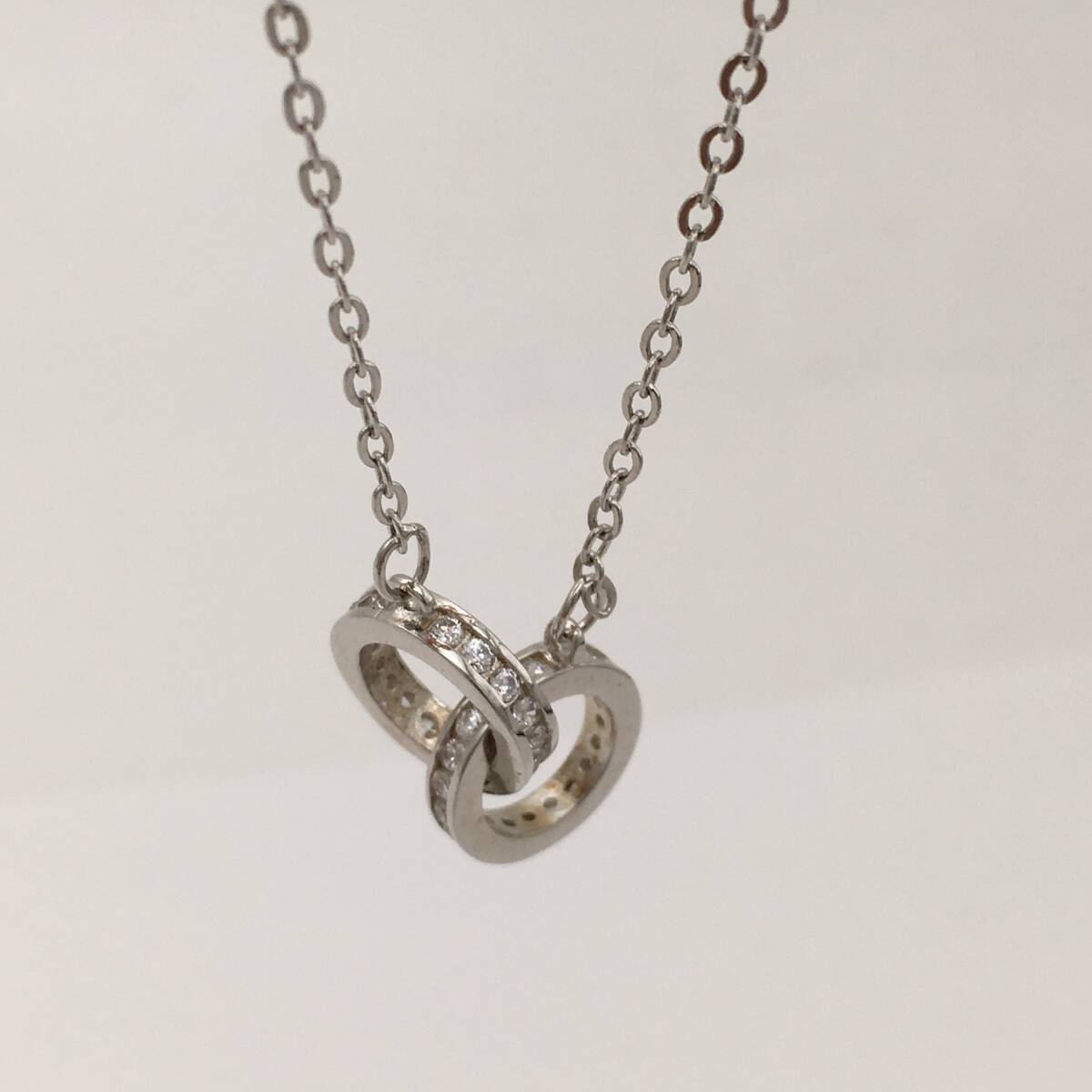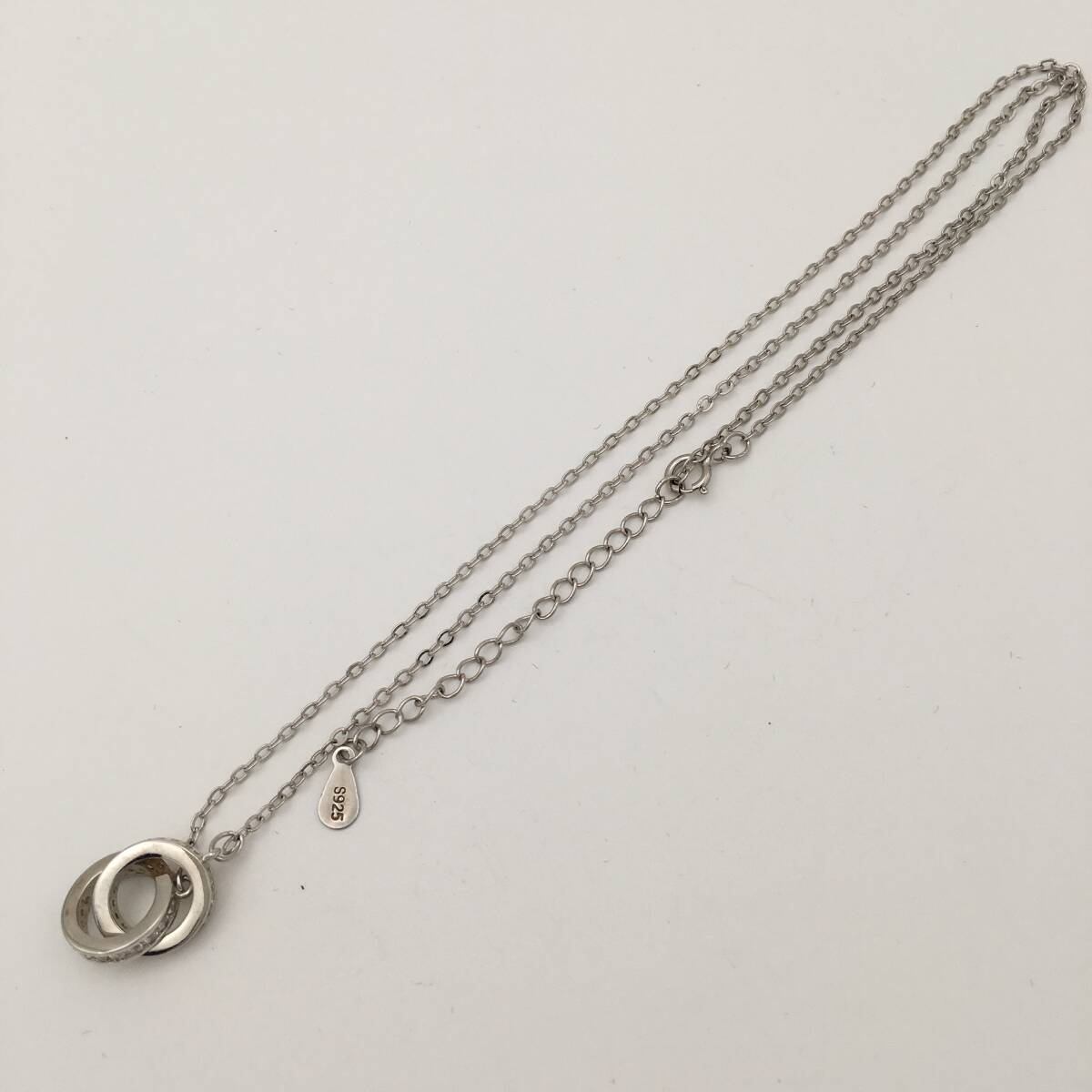 <新品>シルバー 925 ダブル リング キュービックジルコニア CZ アジャスター ネックレス プレゼント ギフト