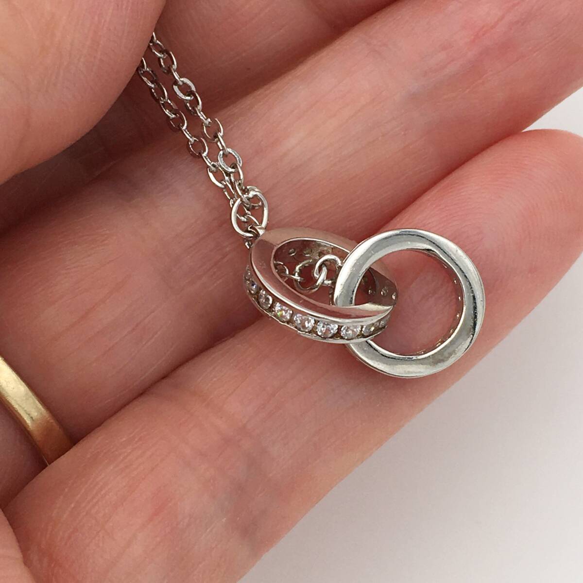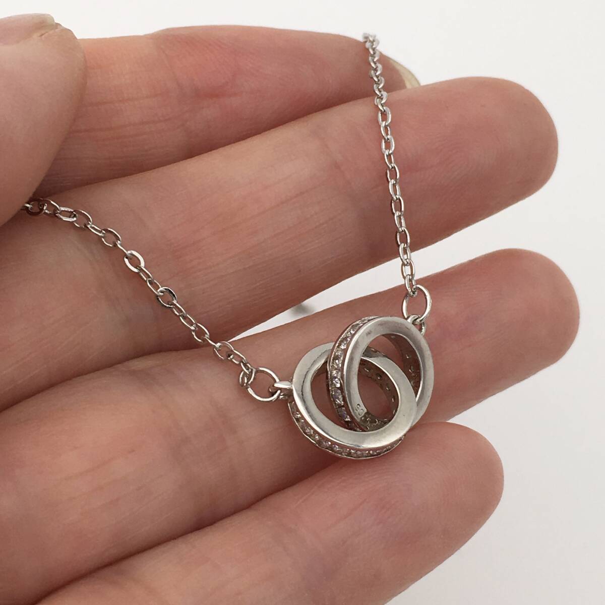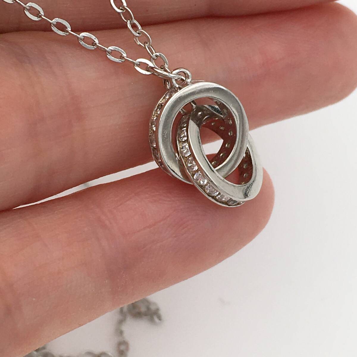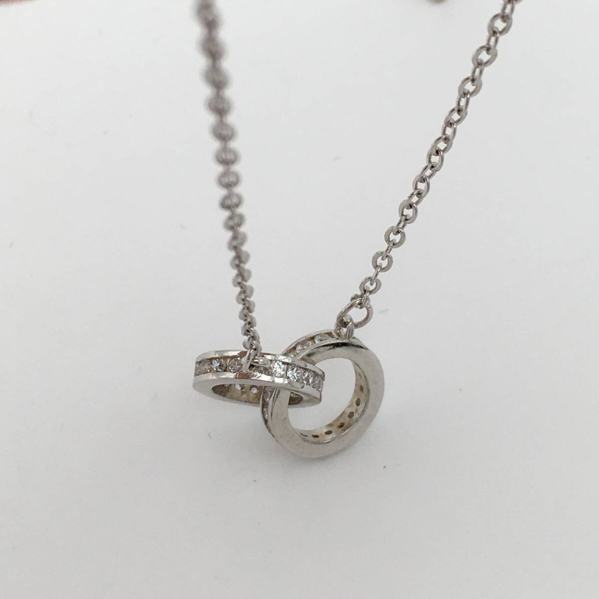 <新品>シルバー 925 ダブル リング キュービックジルコニア CZ アジャスター ネックレス プレゼント ギフト