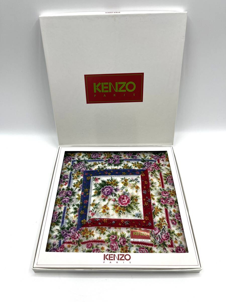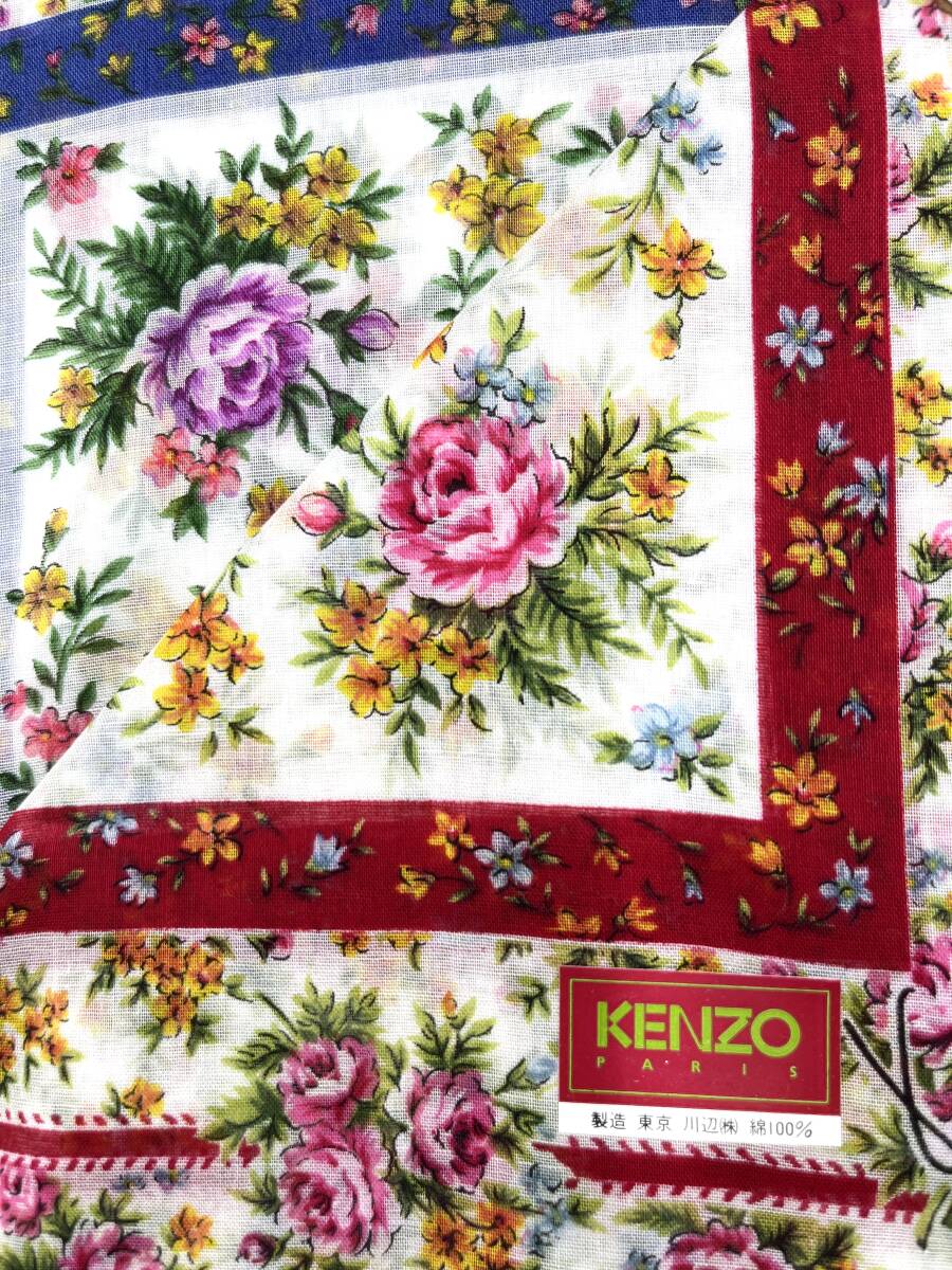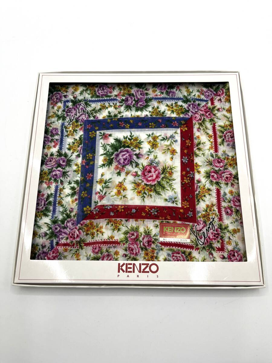 【未使用保管品】KENZO ケンゾー ハンカチ バンダナ 2枚組 ブルー系 レッド系 花柄 フラワー 綿 コットン100%