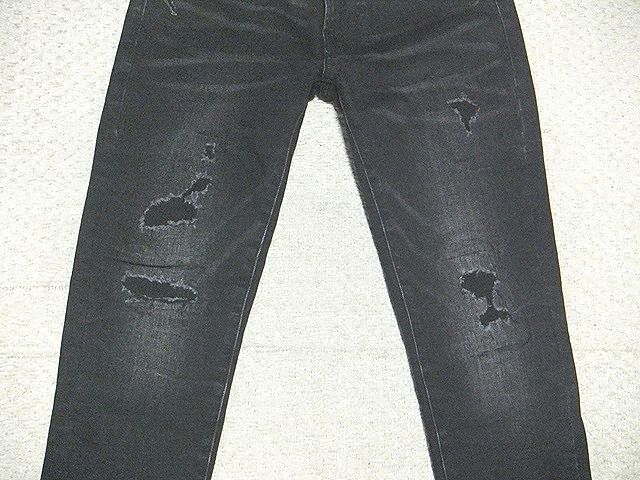 新品同様:アメリカンイーグル.ストレッチ スキニー ブラック デニム 28×28(リペア加工/チェーンステッチ/W75股下72/パンク/raleigh 666)
