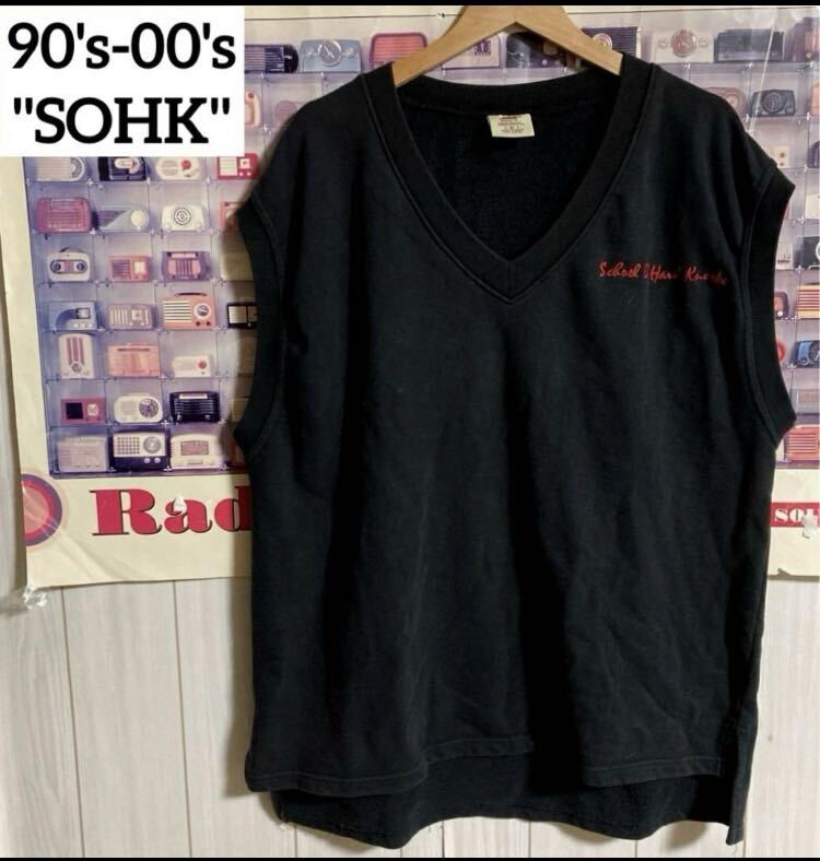 90s-00s SOHK刺繍ロゴBoloスウェットベストTシャツ/西海岸HIPHOPチカーノSK8B系