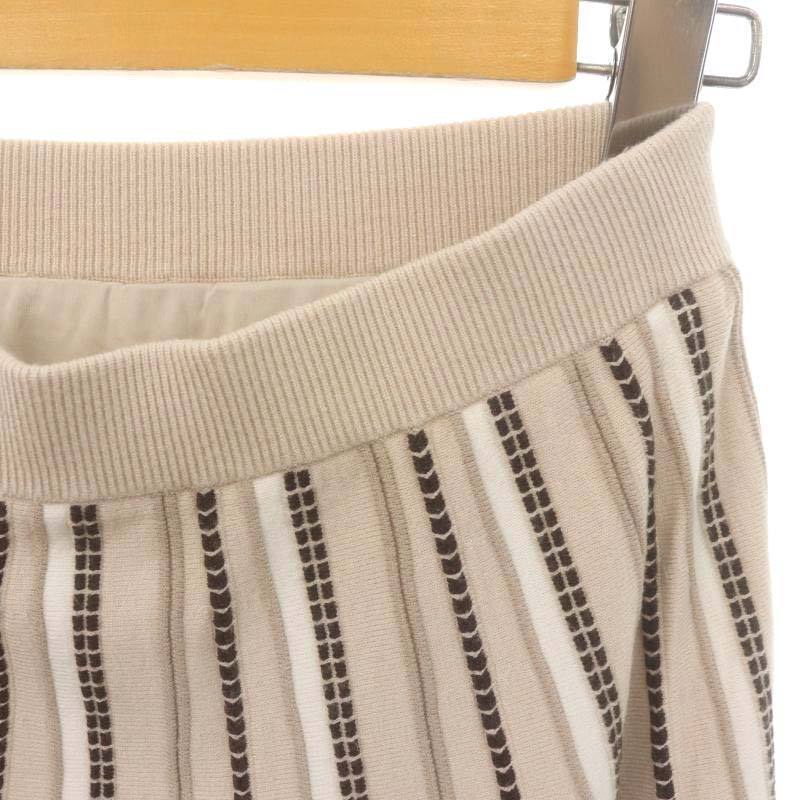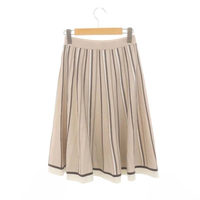 アプワイザーリッシェ Apuweiser-riche ストライプ柄フレアニットスカート ロング ミモレ 1 S ベージュ /SY ■OS レディース