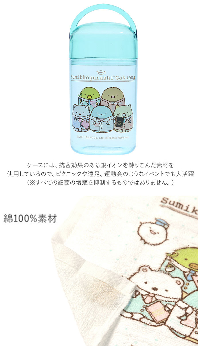 | 商品説明 | ・・大好きなキャラクターと一緒だから、いつものお弁当の時間がもっと楽しくなる☆携帯に便利なおしぼりとケースのセット。 ・クリア素材のケースは、お子さまご自身でフタが開け閉めしやすい持ち手ハンドル付き。 ・濡れたおしぼりを凍らせて、お弁当のとなりに一緒に入れておけば、保冷剤代わりにもなって便利♪ ・ケースとお揃いのキャラクター柄が楽しいおしぼりは、お子さまの肌にやさしい綿100%素材。 ・抗菌効果のある銀イオンを練りこんだ素材を使用しているので、いつものお弁当の時間はもちろん、ピクニックや遠足、運動会のようなイベントでも大活躍。(※すべての細菌の増殖を抑制するものではありません。) ・ドラえもんやポケモン、すみっコぐらしなど、大人気のキャラクターが大集合!お気に入りの柄がきっと見つかる! |