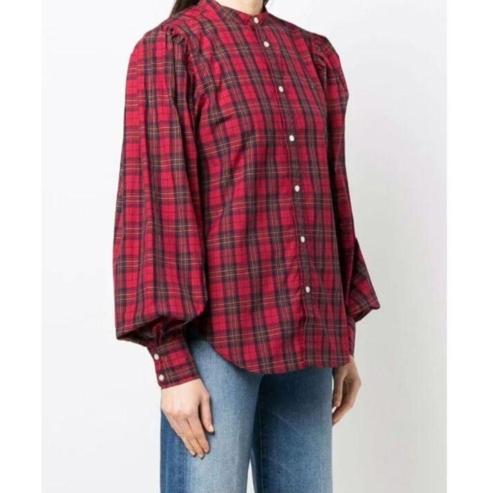 POLO RALPH LAUREN ポロラルフローレン ボリュームスリーブ タータンチェック バンドカラーチェックシャツ 0 レッド 長袖 ギャザー g17955