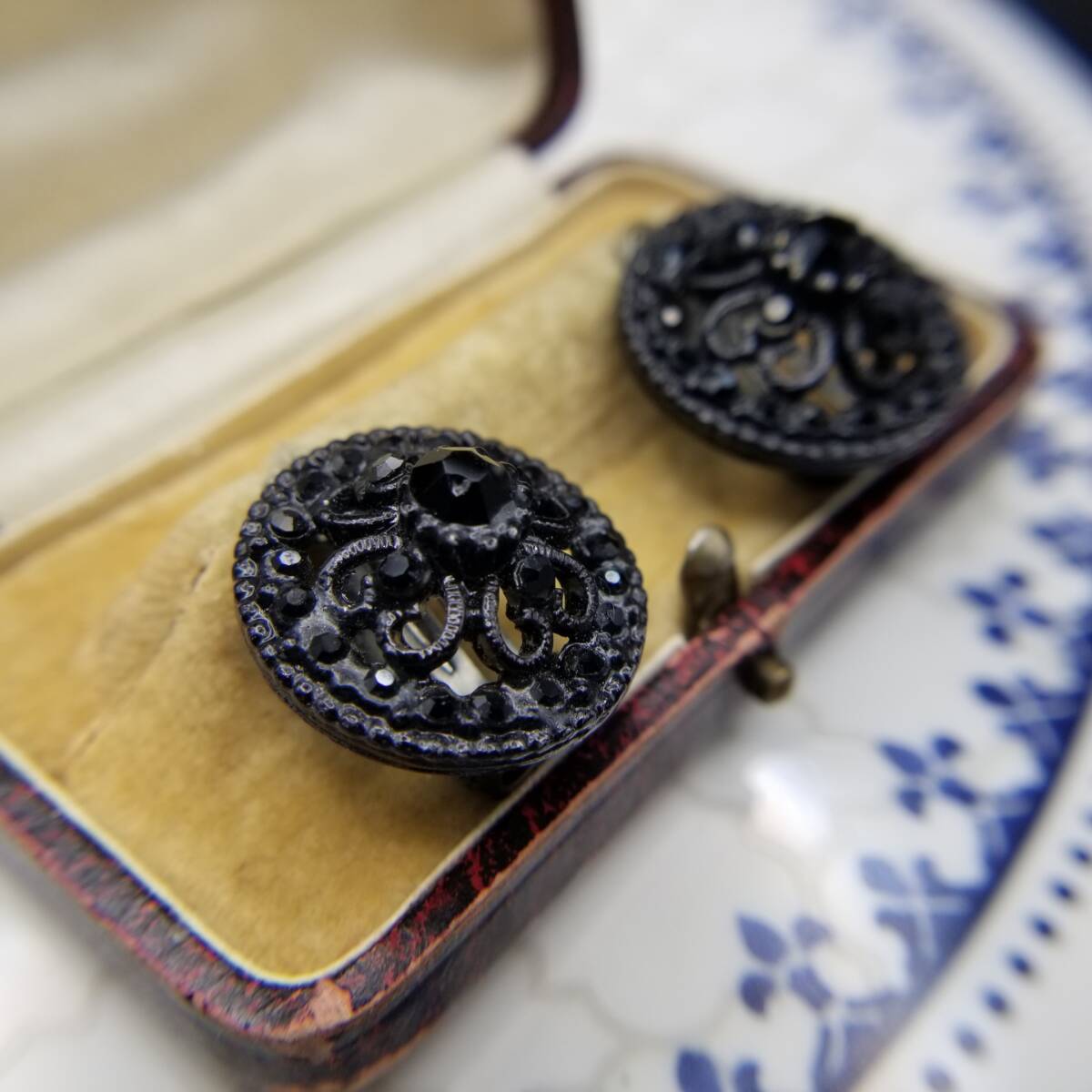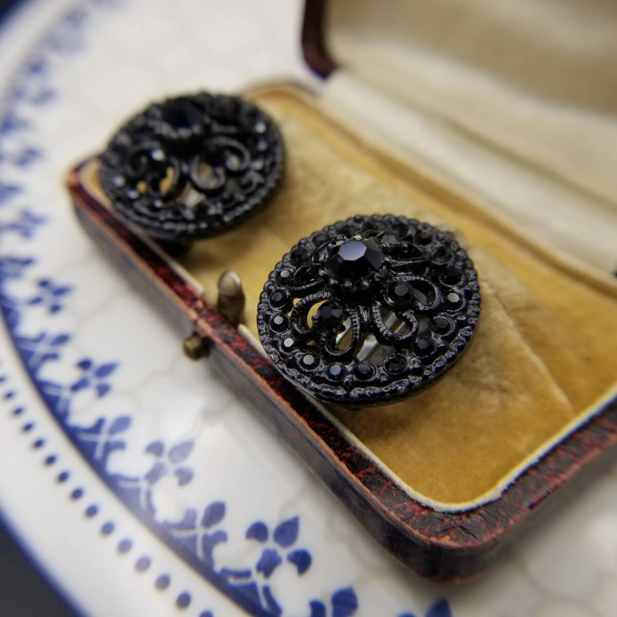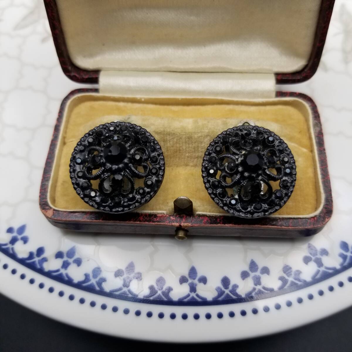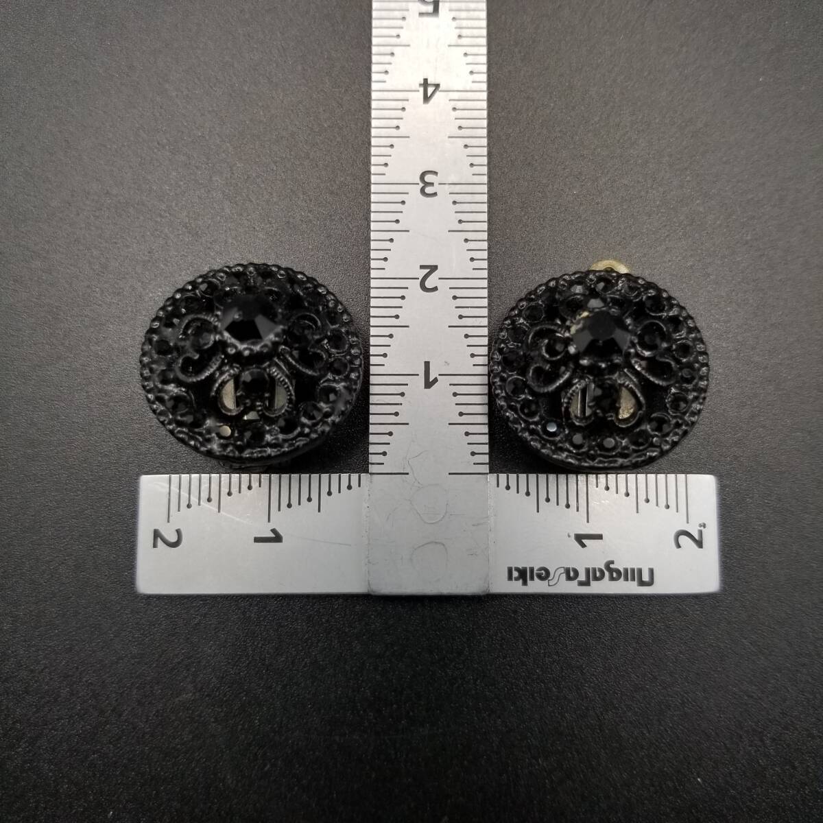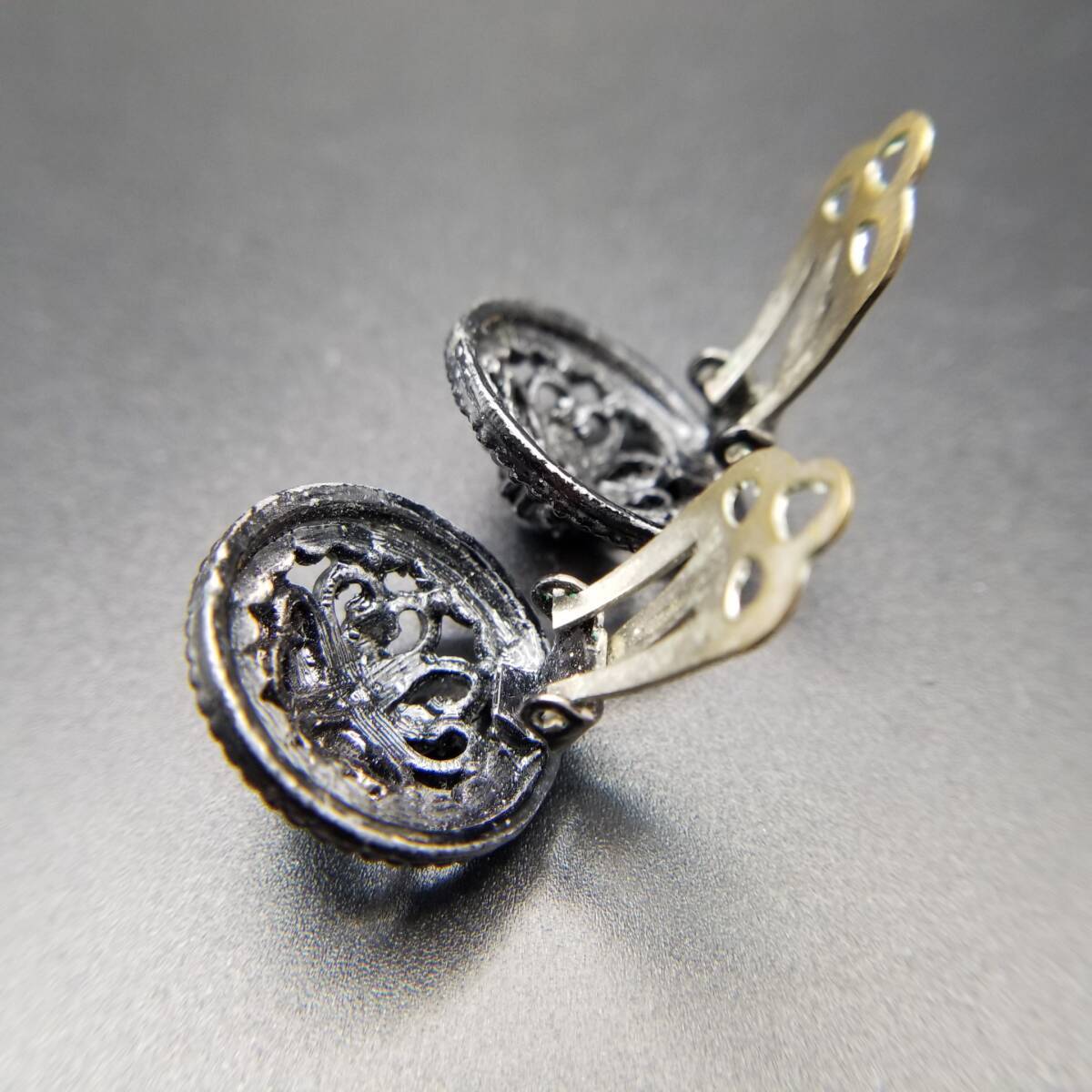 ブラックレース装飾 ラウンド 透かし ヴィンテージ フラワー クリップイヤリング クラシカル 上品 黒 小ぶり Y18-D