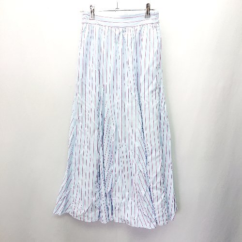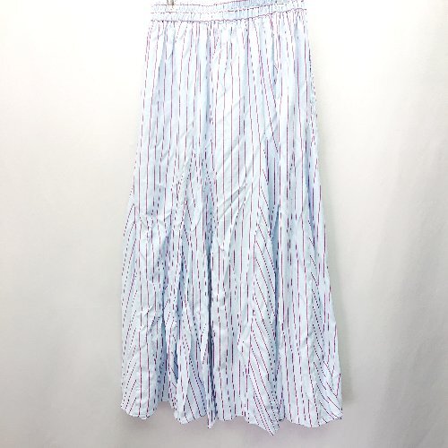 ◇ ◎ ●未使用● natural couture ストライプ柄 ロング丈 フレア スカート サイズF ライトブルー レディース E