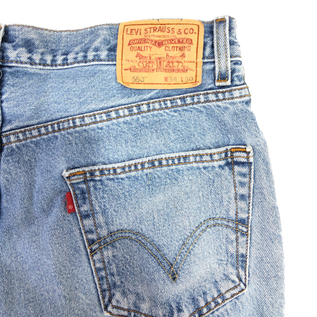| [商品管理番号] R4620 [ブランド] Levi's/リーバイス [サイズ] W34 L30 [実寸サイズ] ウエスト:約84cm 股上:約28cm 股下:約73cm わたり幅:約33cm 裾幅:約20cm [主な素材] 表地 : コットン [色] ライトブルー [仕様] 2000年 550 [状態] 汚れ:スネ 破れ:裾 | |||