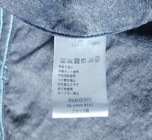 | <商品名> POST O'ALLS OVERALLS ポスト オーバーオールズ POST40 CONE CHAMBRAY シャンブレー カバーオール ジャケット M アメリカ製 <サイズ> M <詳しい寸法> 身幅55.5着丈74.5裄丈87(単位:㎝) ぐらいです。 <商品状態> 多少の使用感はございますが良好です。 <商品説明> POST40 CONE CHAMBRAY アメリカ製