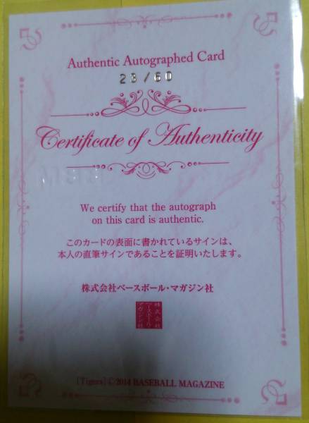BBM2014 阪神タイガース 日高剛 直筆サインカード 60枚限定