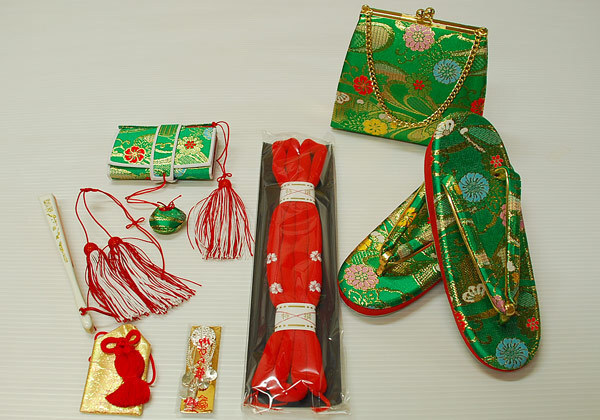 京有栖☆七五三☆七歳用結び帯・箱せこペアセット☆金襴☆緑2