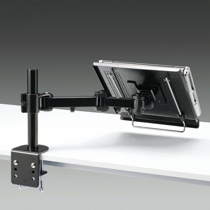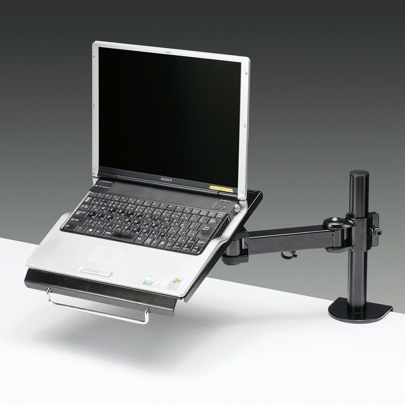 机上空間を有効活用。サブマシンの設置に最適なノートパソコンアーム。