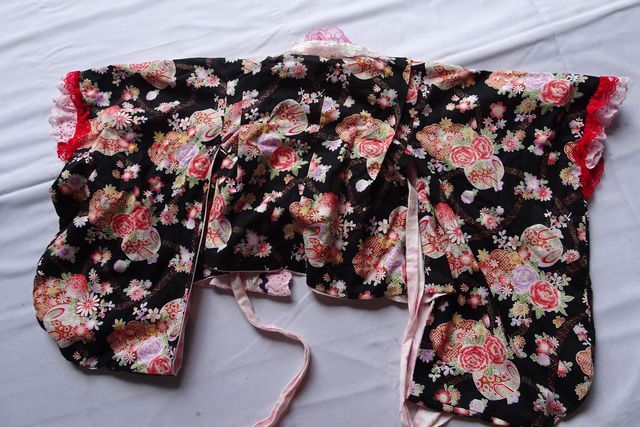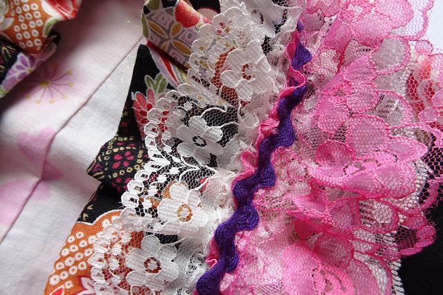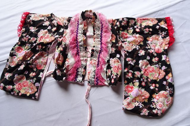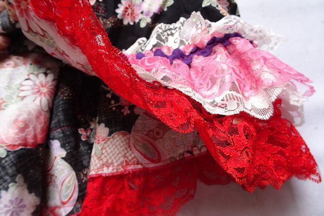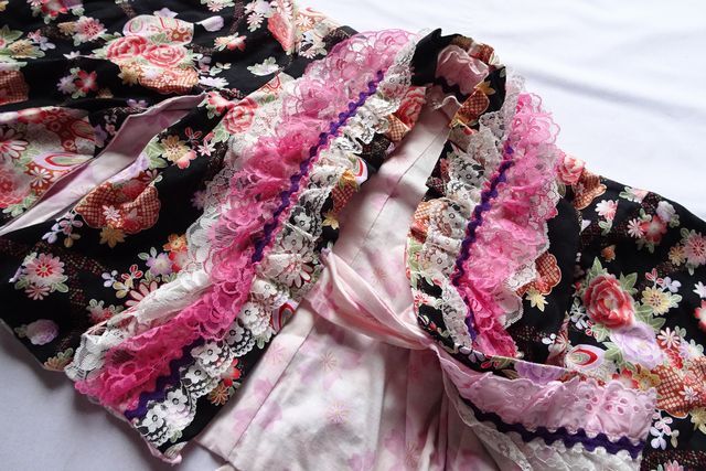 着物ドレス/セパレート/キッズ/女児/和柄/ミニ丈フレアースカート/フリル/レース/スカート2枚重ね/ボリューム感/黒/ブラック(7/25R6)