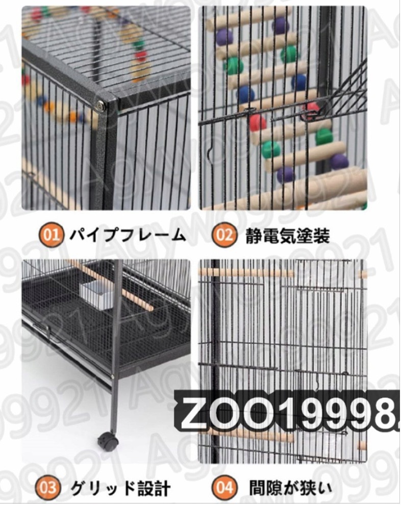 【本体素材】:衝撃に強い金網素材で作られた、丈夫で耐久性は優れています。 【商品サイズ】:45.5*45.5*77CM 【セット内容】:ケージ本体、引き出しトレー、止まり木*2、餌入れX2 【掃除しやすい】:通気性は抜群、夏も蒸し暑くないです。引き出しトレー設計で、お掃除の時、一回でゴミを出すことできます。 【適用対象】:インコ オウムケージ オカメ セキセイ ボタン コガネメキシコ コザクラ マメルリハ ウロコ アキクサ ほとんどの鳥に適用しています。 商品の情報 詳細情報 ペットの品種大型 色ブラック サイズ46L x 46W x 77H cm 商品の数量1 その他 機能通気性