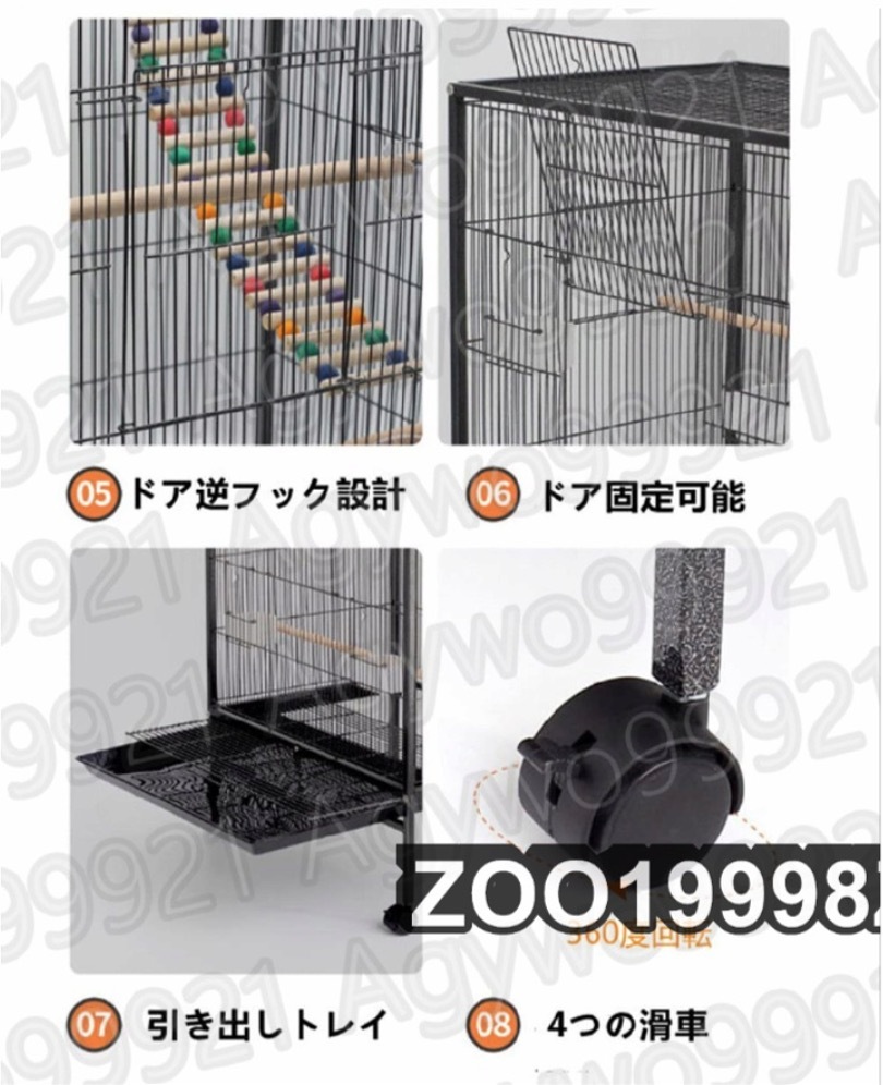 鳥ケージ 鳥かご 大型 豪華ケージ 大きい 複数飼い インコ オウムケージ オカメ セキセイ ボタン 文鳥 45.5*45.5*77CM ブラック