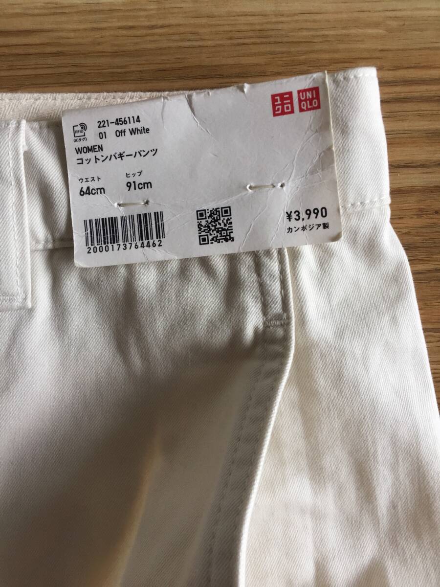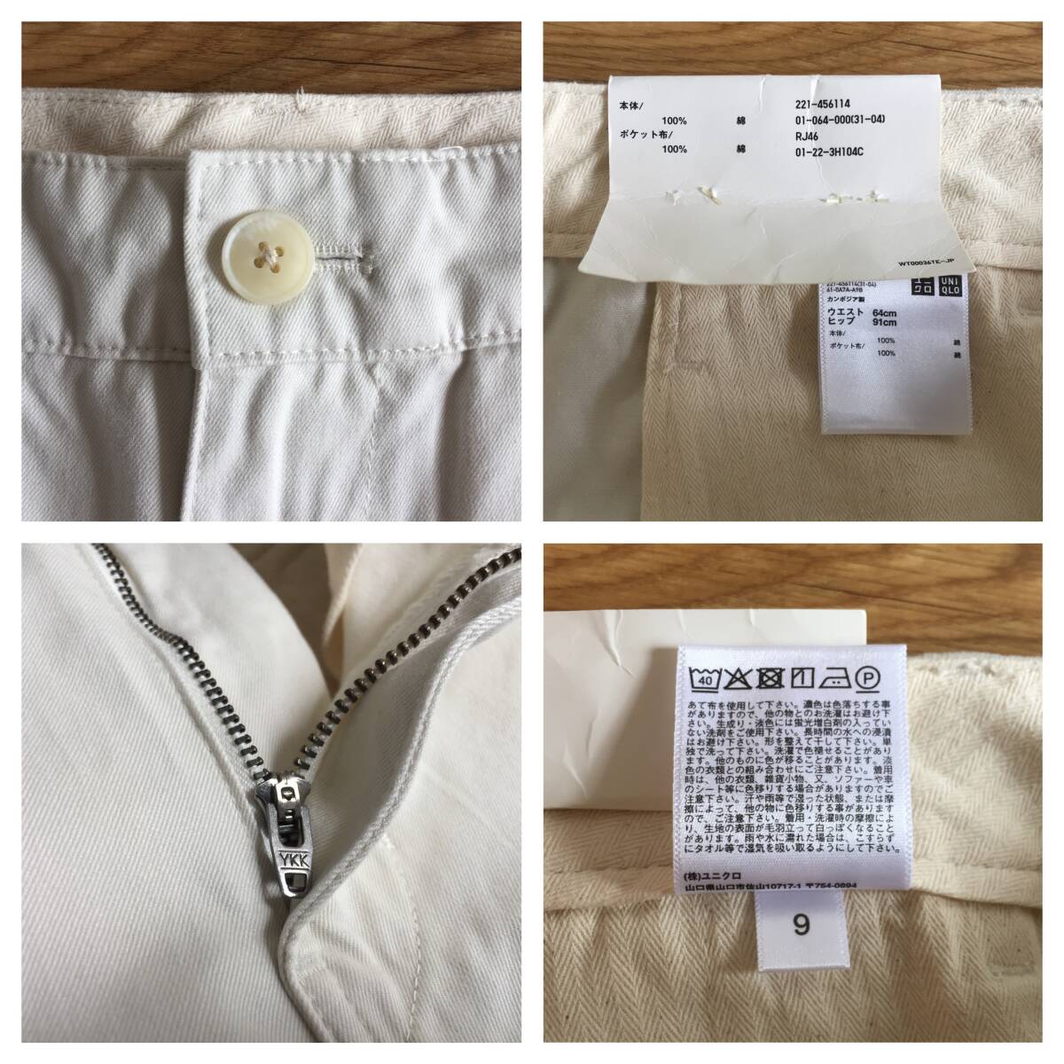 UNIQLO ユニクロ コットンバギーパンツ パンツ レディース ウエスト64cm ヒップ91cm オフホワイト 100%綿 デッドストック 未使用保管品