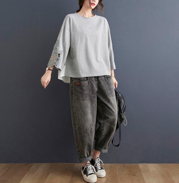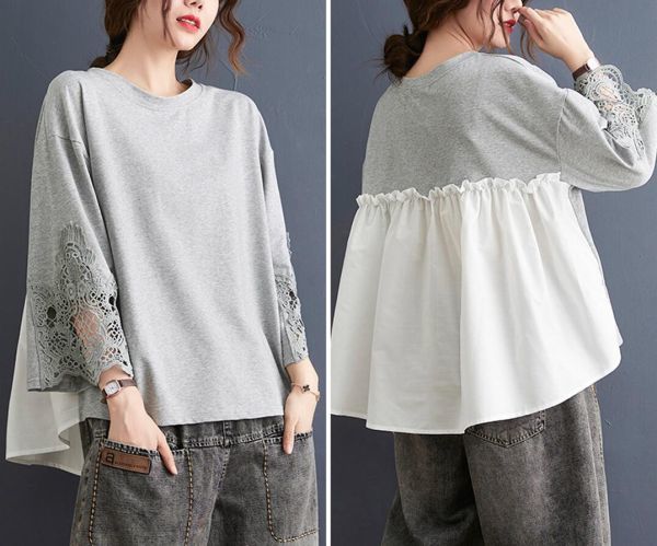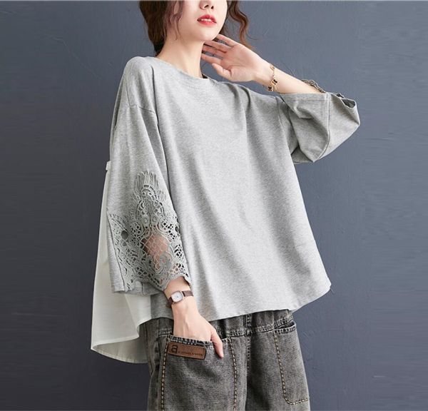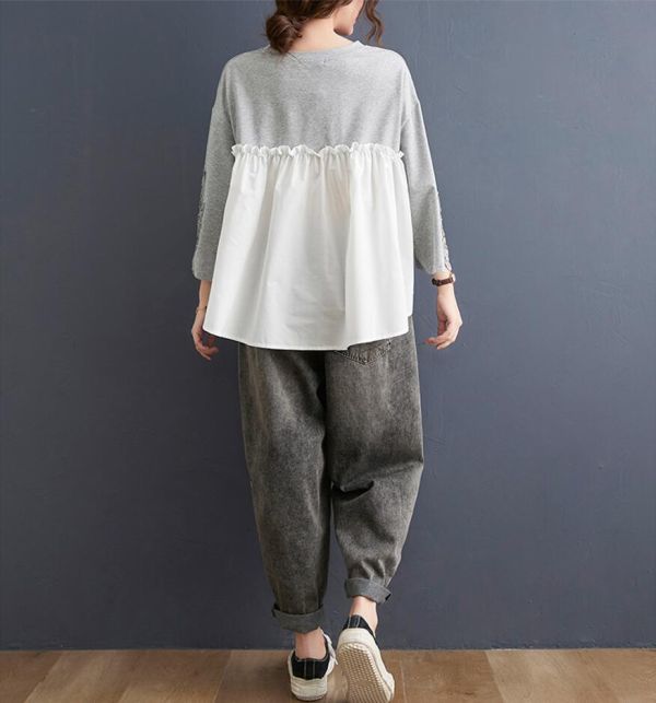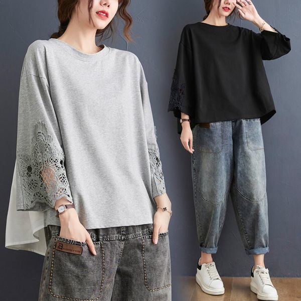 XL サイズ : 着丈61-70cm バスト117cm 肩幅58cm 袖丈37cm 素材 : コットン ポリエステル |