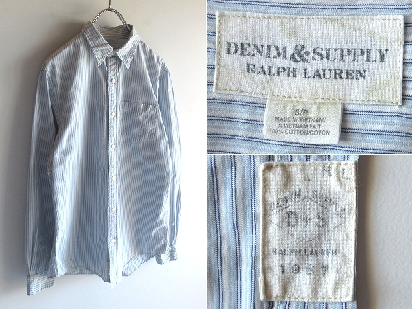 ネコポス対応 DENIM&SUPPLY RALPH LAUREN デニム&サプライ ラルフローレン コットン ストライプシャツ S ライトブルー 国内正規品