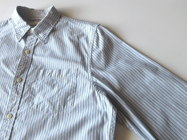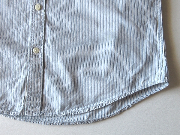 デニム&サプライ・ラルフローレンのシャツ。ストライプのコットン生地を使用しております。左胸にポケット付き。前裾の内側のロゴワッペンがさりげないアクセントになります。上質な素材使いと綺麗なシルエットで、様々なコーディネートにお使い頂ける一着です。