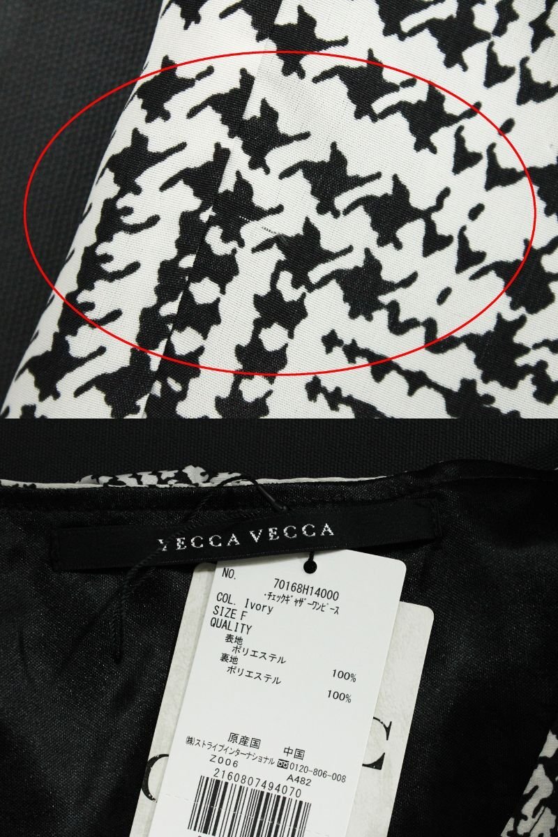 未使用品 イェッカヴェッカ チェック柄ギャザーノースリーブワンピース定価1万 黒F rj508