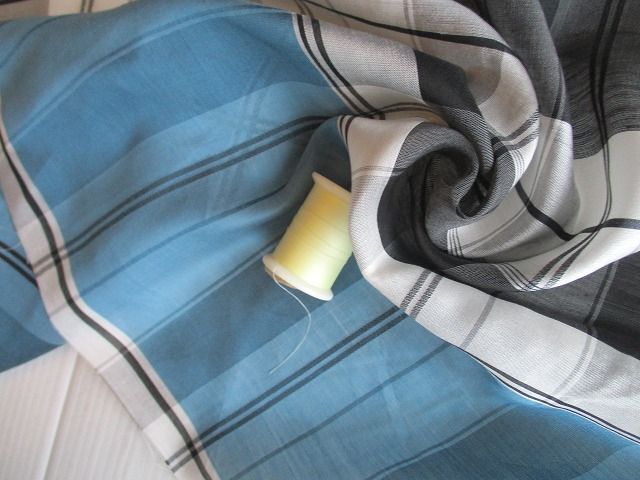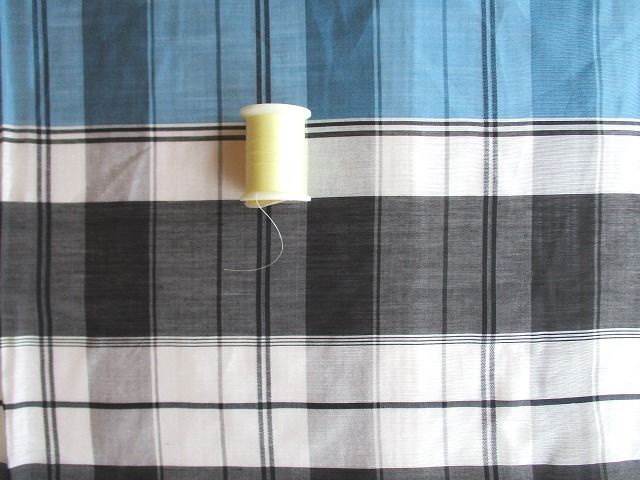 ◆ブルー×黒白薄グレーチェックパネル生地 | |||