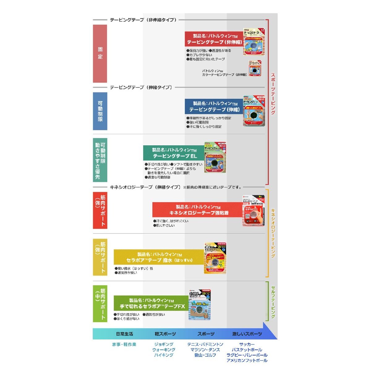 「ニチバン バトルウィン テーピングテープ 非伸縮タイプ 12mm×12m C12F」▼4987167027001▼(商品説明)・Multicolor 12メートル (x 2) C12F・・Size:12メートル (x 2)PatternName:個装タイプ・【スポーツテーピングテープ】サッカーやバスケットボール、バレーボールなど、激しいスポーツのケガや傷害の応急処置から、予防までアスリートをサポート。・【伸びないタイプのテーピングテープ】伸縮しないため、強い固定や圧迫に適したテーピングテープです。・【手で切れる】ハサミ不要。手で切れる使いやすいテープです。・【汗に強い】激しい運動で汗をかいてもはがれにくいテープです。・【ポピュラーな色】ホワイトカラー。ベージュタイプのC12FBもご用意しています。説明 スポーツによるケガの予防、再発防止、応急処置などにご使用いただくテープです。 伸びないテープでく、強い固定や圧迫に適しています。 汗に強く、手で切れる使いやすいテープ。カラーはホワイト。 サイズ ・12mm×12m 内容量 ・2巻入り 使用上の注意 ●粘着テープ類によるカブレ、アレルギー症状(例えば発疹・発赤、かゆみなど)のある人や、キズぐち、皮ふ炎には直接使用しないでください。 ●治療のためにご使用の場合は必ず医師の指導に従ってご使用ください。(当社より治療方法のご案内はできません)。 ●皮ふが弱い人や皮ふの弱い部位、体毛の濃い部位でのご使用には、皮ふの損傷を防ぐ為に、前もってバトルウィン アンダーラップテープをテーピングし、皮ふを保護してください。 ●パッケージの【使用上の注意】もお読みください。