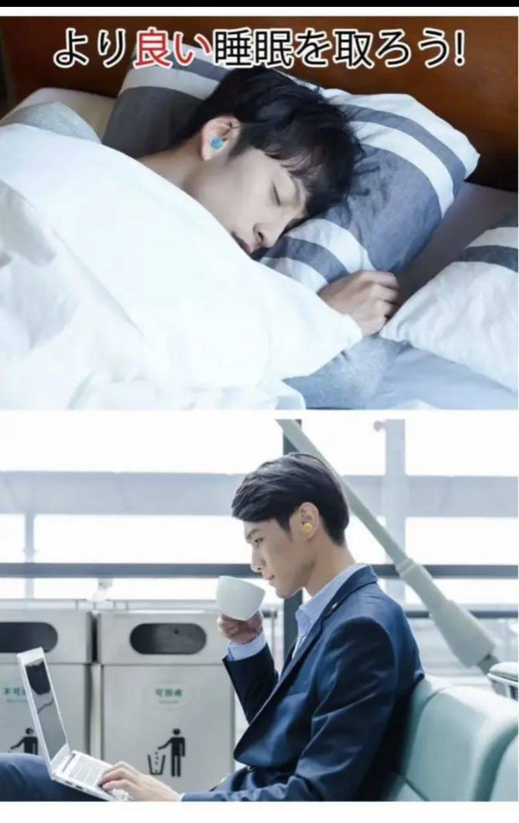 寝る時に必ず使う耳栓】 2種類の耳栓を入れ、自分の耳に合う耳栓を選んでご利用いただけます。人体工学に基づいたデザインで、より安定した装着感と安全性を実現できました。