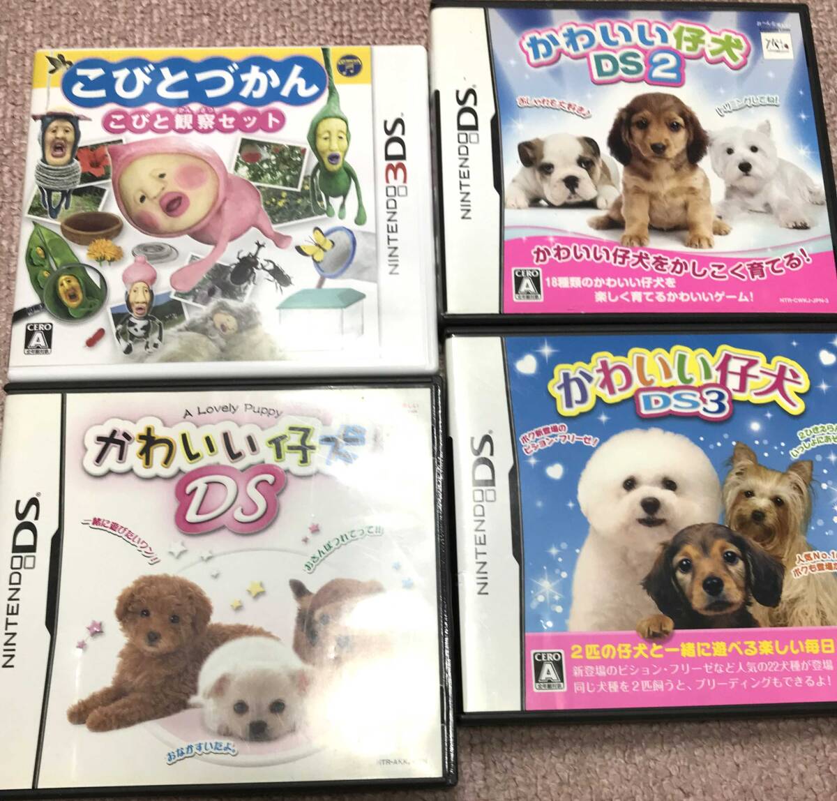 カセット4本 任天堂DS 4本セット かわいい仔犬 DS2 かわいい仔犬をかしこく育てる こびとづかん DS ニンテンドーDS