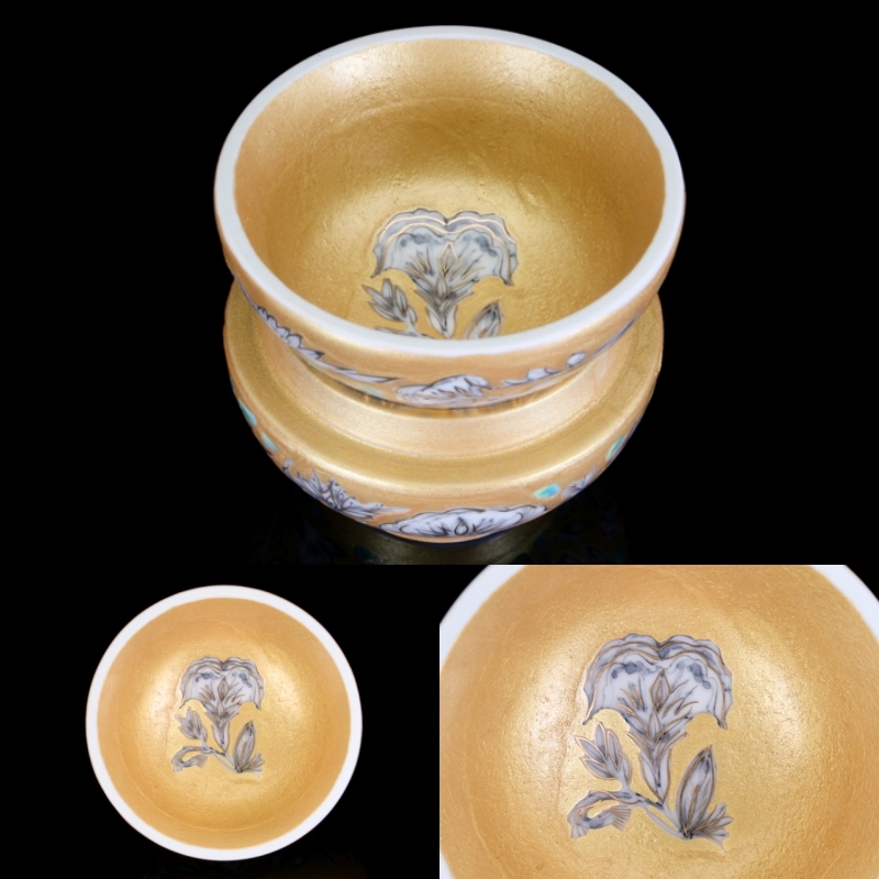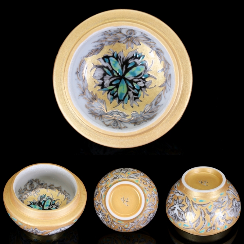 【MG敬】朴木友美 作『玉盃「鉱石草花文」ワキン』共箱付 honk15-1