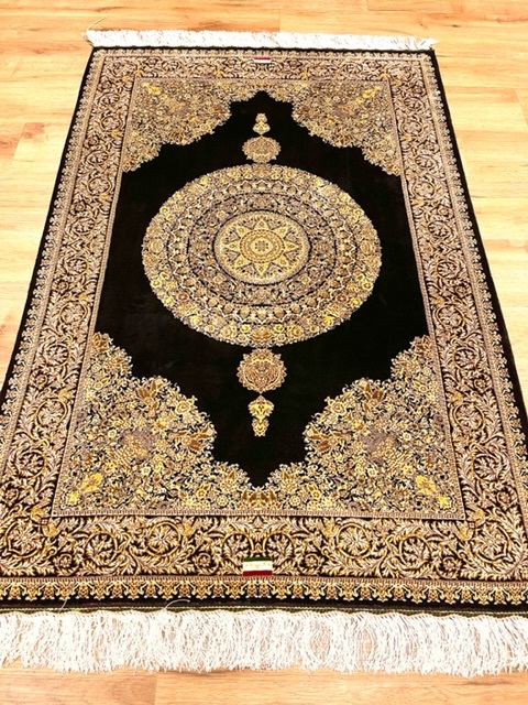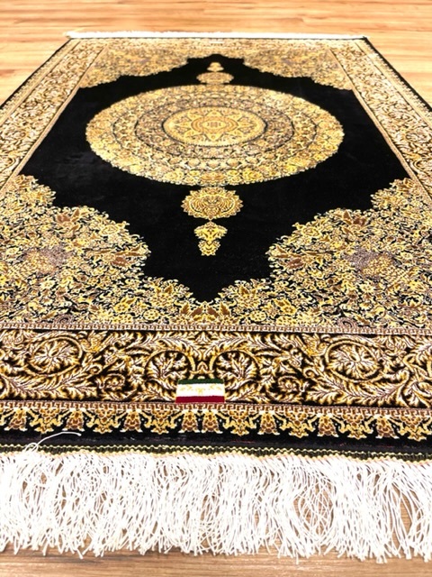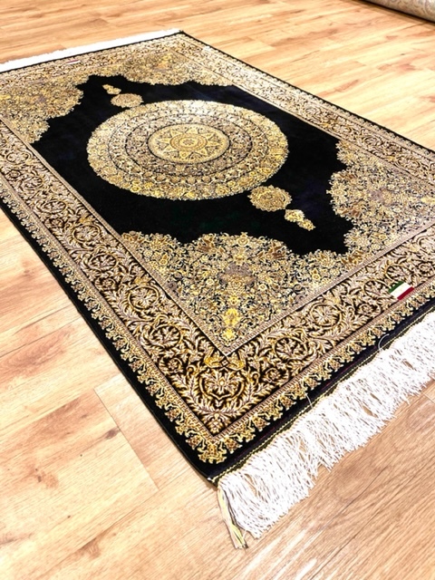 ペルシャ絨毯・最高級ハンド&マシン織り・ 世界最高密度150万ノット ・豪奢なクムデザイン 80cm×120cm ro100