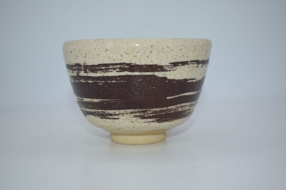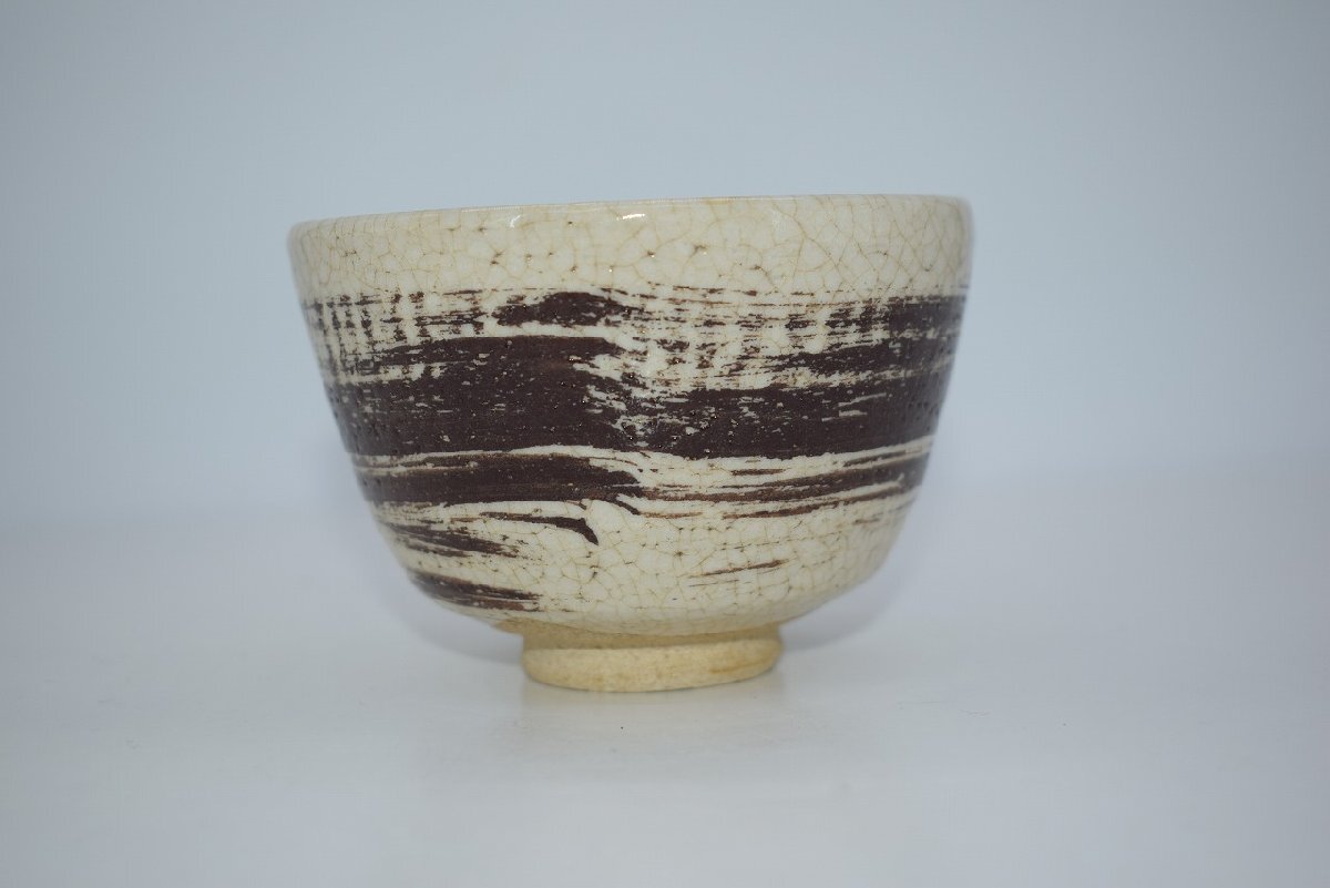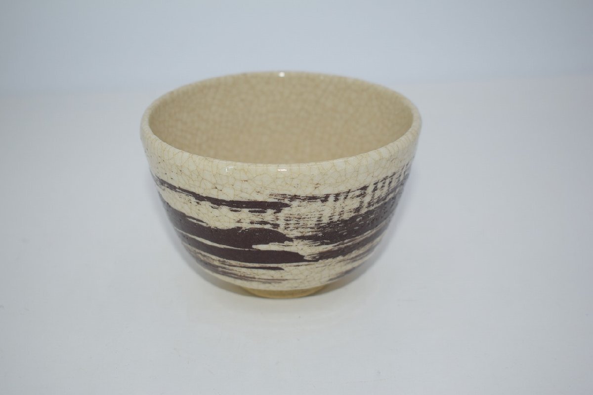 茶道具 抹茶茶碗 絵瀬戸 刷毛目 茶碗 加藤 六兵衛 作 t 紙箱 tz18-005 径10.4cm 高さ7.2cm