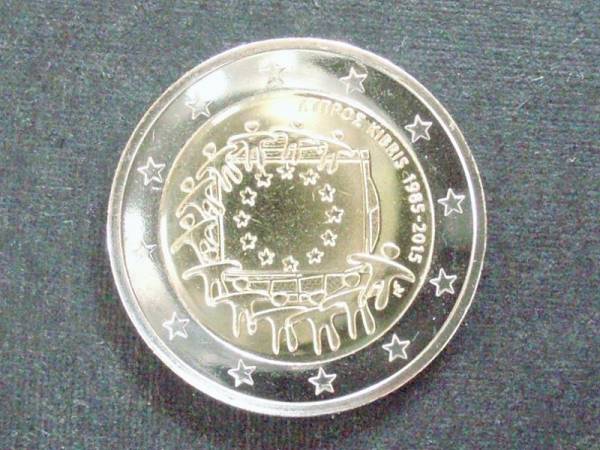 キプロス 2ユーロ記念硬貨 2015年 欧州旗30周年記念 UNC(未使用、ロール出し)