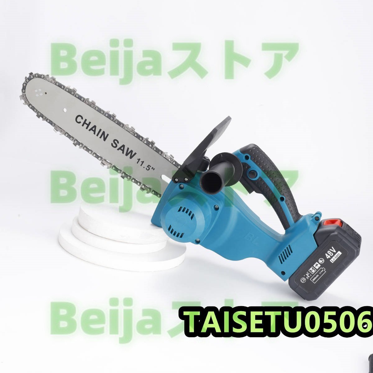 大容量48Vリチウムイオンバッテリー1個付きで、15cmの木30本ぐらいを楽に切れて、十分に作業できます。