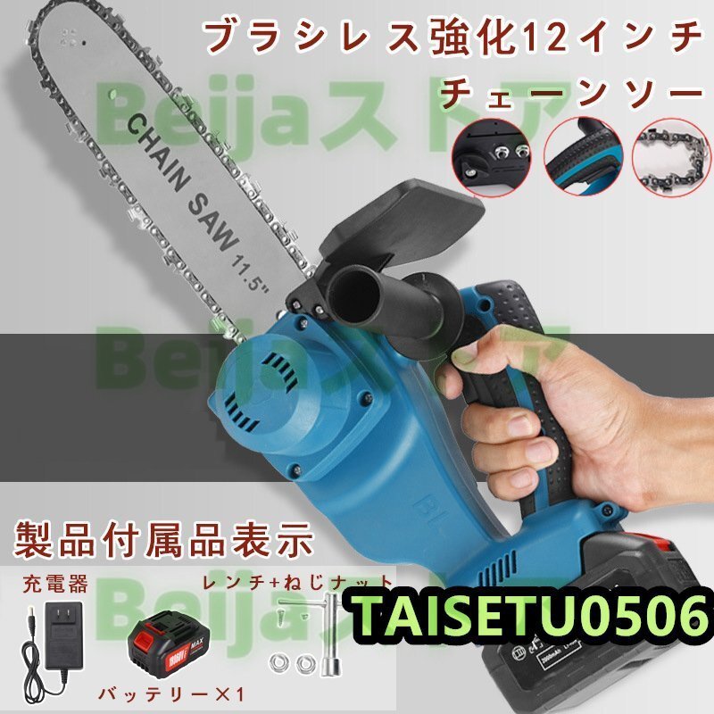 充電式チェーンソー 電動コードレスチェーンソー 12インチ ガイドバー ブラシレスモーター 自動給油 強力 木工切断 剪定ばさみ 枝切り