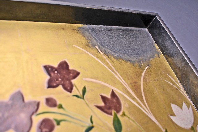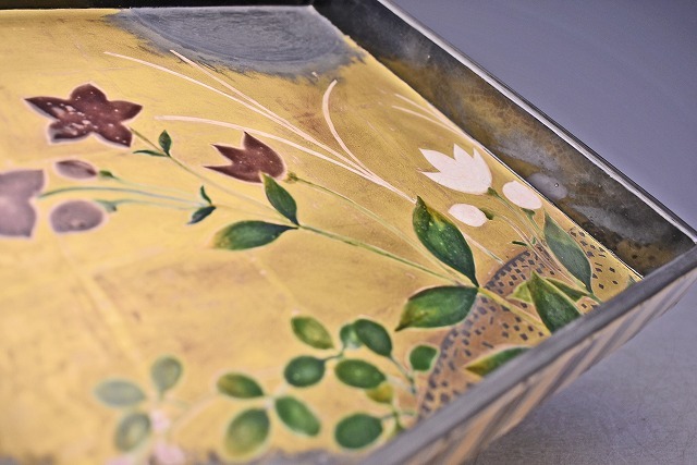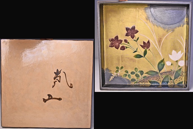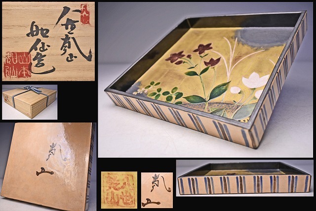 サイズは 242mmx232mmx高さ34mm です。 八世 乾山 山本如仙 氏の 作品です。 琳派風の 陶芸作品です。 木箱にイタミがあります。宅配便80サイズにて発送します。 他にも多数出品してます。同梱対応いたします。