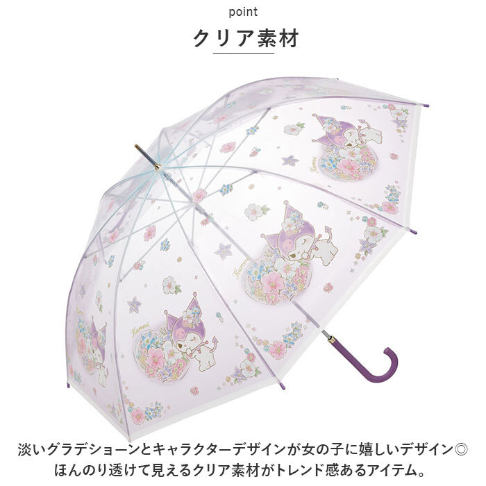 商品説明 | ・・人気キャラクターが描かれたプレミアムビニール傘(親骨60cm)が新発売! ・【クリア素材】 ・淡いグラデショーンとキャラクターデザインが女の子に嬉しいデザイン◎ ・ほんのり透けて見えるクリア素材がトレンド感あるアイテム。 ・【厚手生地】 ・丈夫な0.09mmの厚手生地を使用し、破けにくい耐久性のある傘生地。 ・【グラスファイバー骨】 ・傘骨は軽くて丈夫で折れにくいグラスファイバーを使用。 ・【安全カバー】 ・開閉部は指を挟みにくい安全カバー付きで簡単に開閉できる手開きタイプ。 ・【上質感のあるデザイン】 ・ハンドルは手に馴染みやすくデザイン性もある合皮素材を使用☆ ・スリムな金属製の石突とアクセントにゴールドカラーを取り入れ洗練された仕上がりに。 ・【留めバンド】 ・傘生地を留めるバンドは、バチンっと留めやすいスナップボタン式。 ・【小学生から高校生まで】 ・小学校高学年~高校生まで愛用できる親骨60cmのビッグサイズ!ランドセルやリュックも雨からしっかり守ってくれ、憂鬱な雨の日もお気に入りのキャラクターと一緒に楽しくお出かけ♪ |