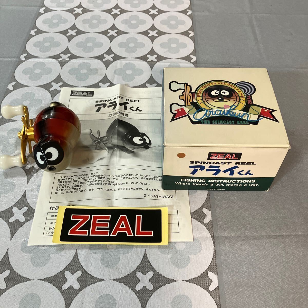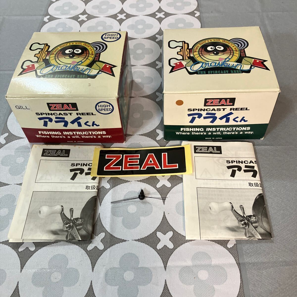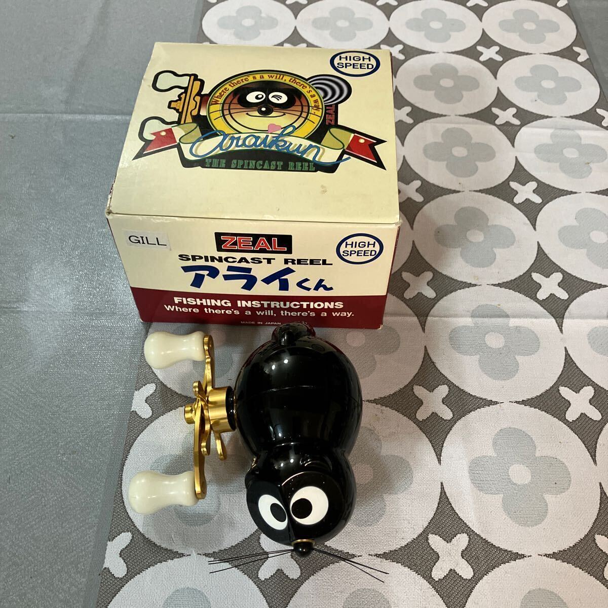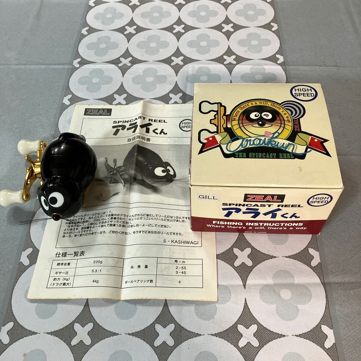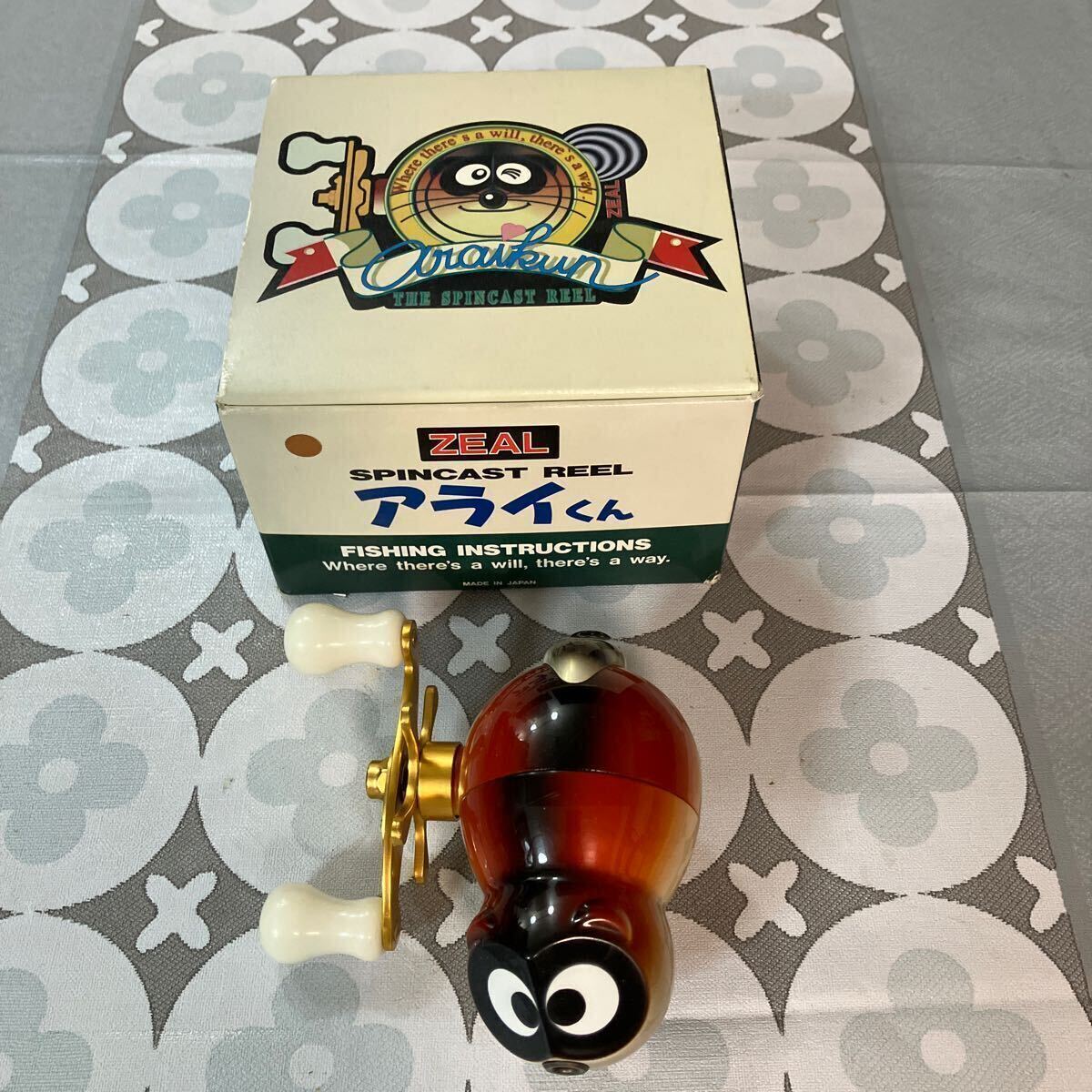 ビンテージもの、超ルアーフィッシングコレクターからの蔵出し品、超絶美品かつ希少『ZEAL アライくん スピニングリール 2種』 標準色とオールブラックの超希少品となります。