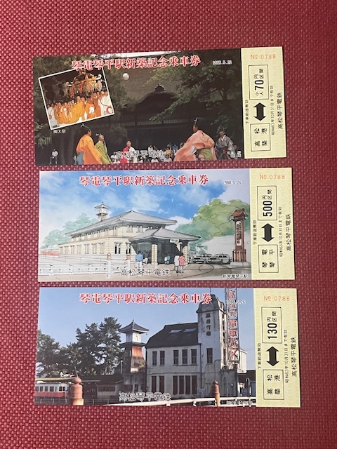 高松琴平電鉄 琴電琴平駅新築記念乗車券 (管理番号38-41)