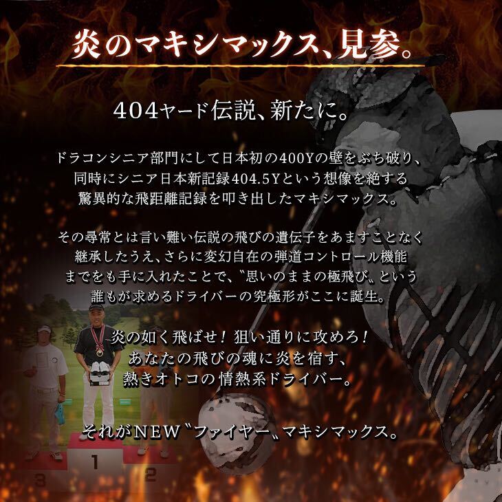 「日本一の飛距離性能に加え、自由自在の操作性」までをも叶えた最強のルール適合激飛びドライバーを武器に、次のゴルフは炎のようにブッ飛ばしてみませんか。
