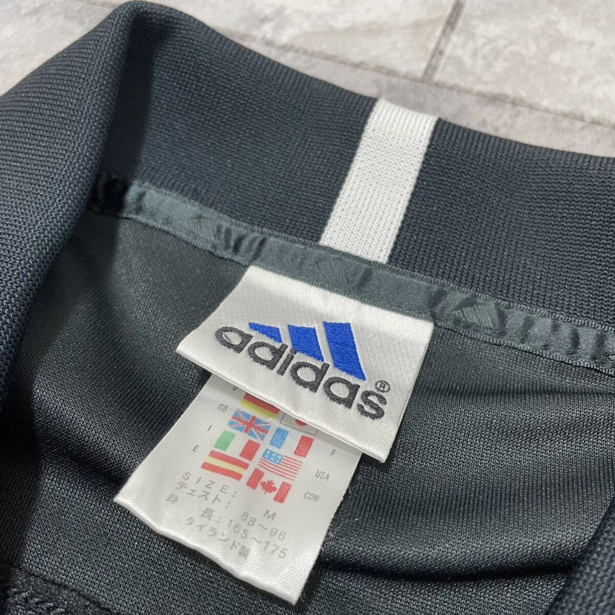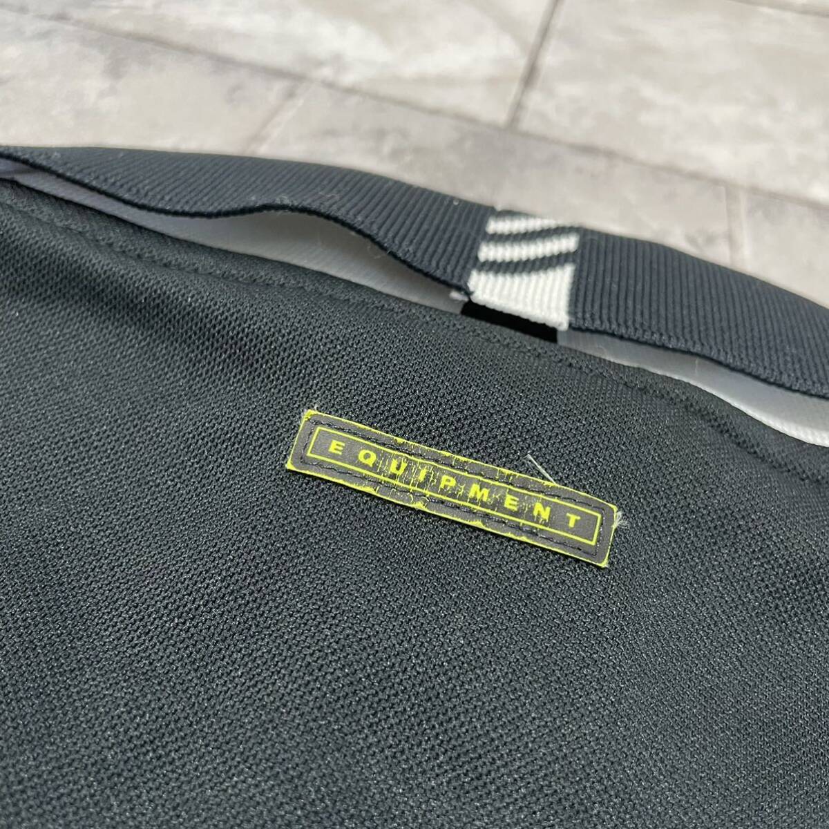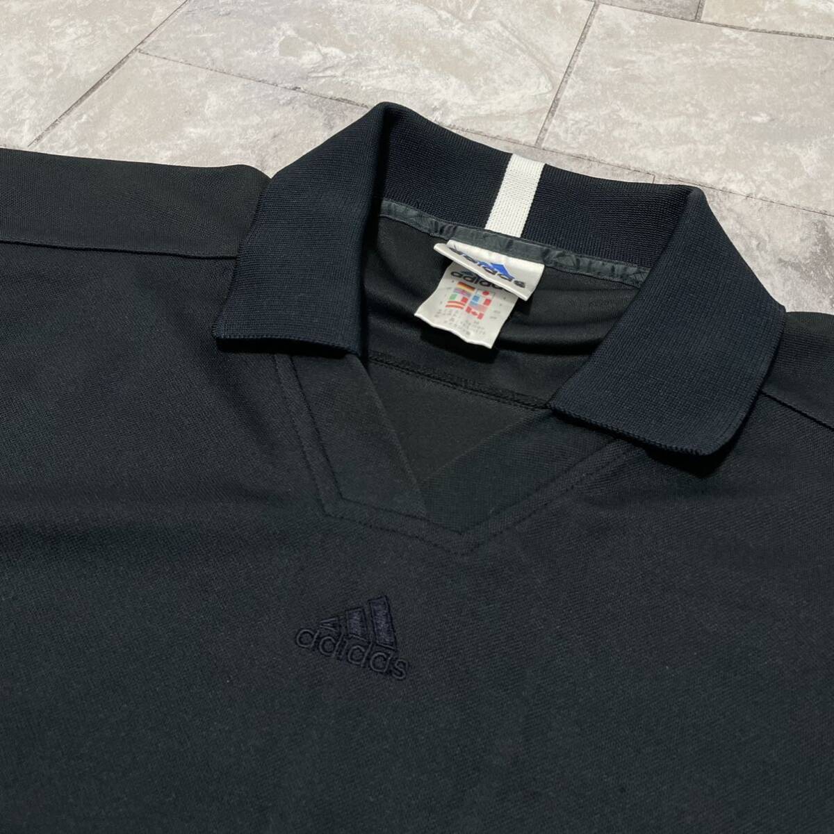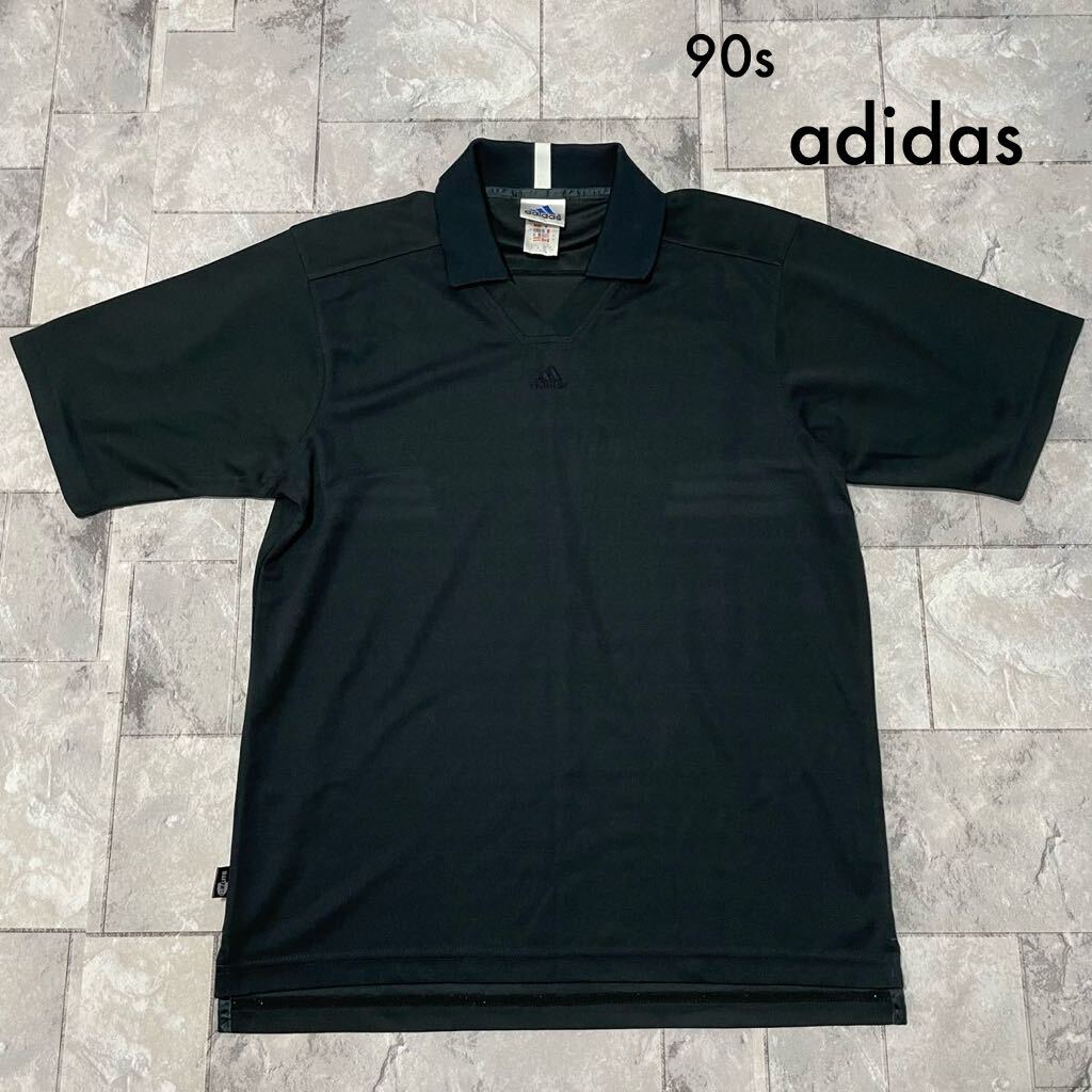 90s adidas アディダス ポロシャツ Equipment Vネック 襟付き Tシャツ ヴィンテージ センターロゴ CLIMALITE ブラック サイズM 玉SS1952