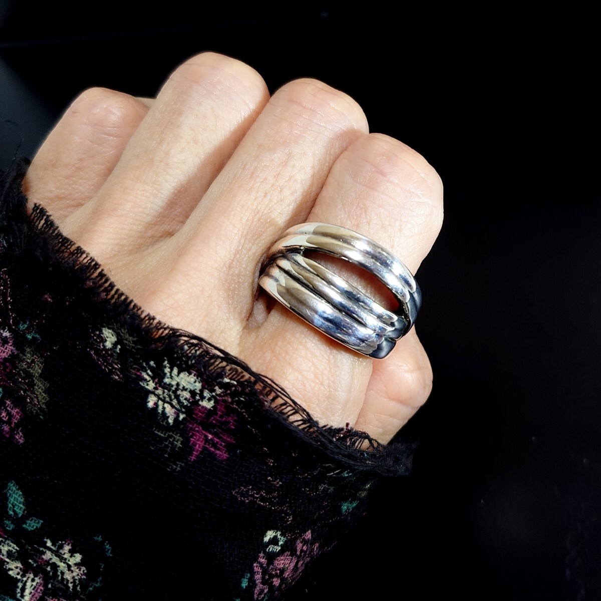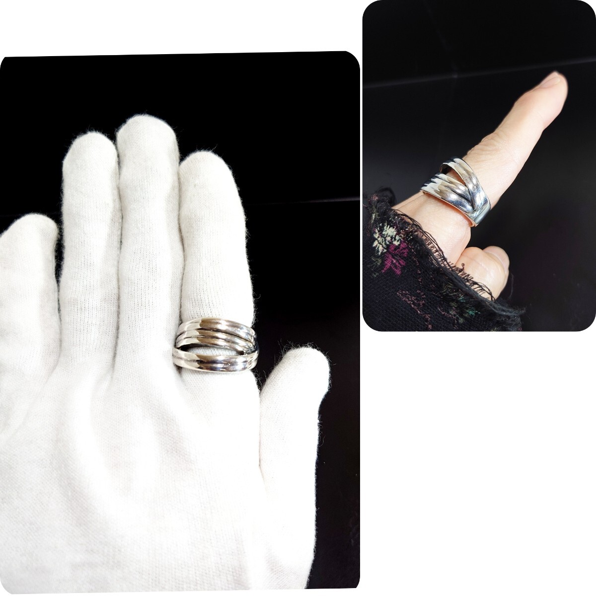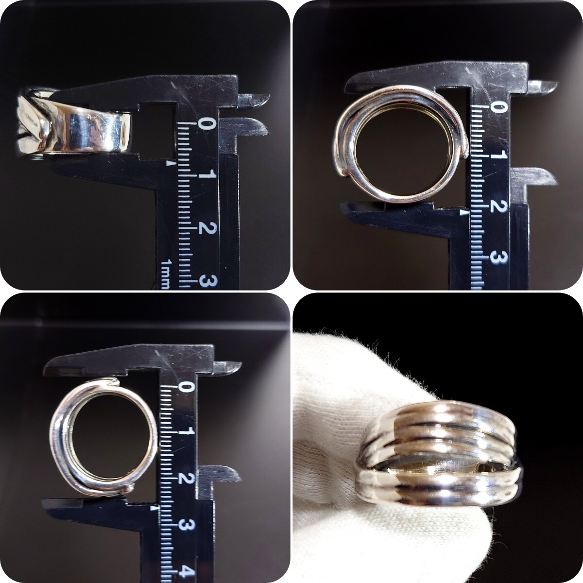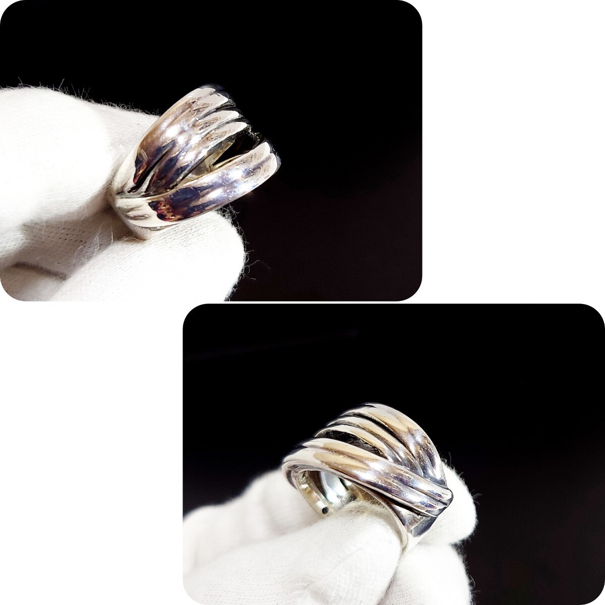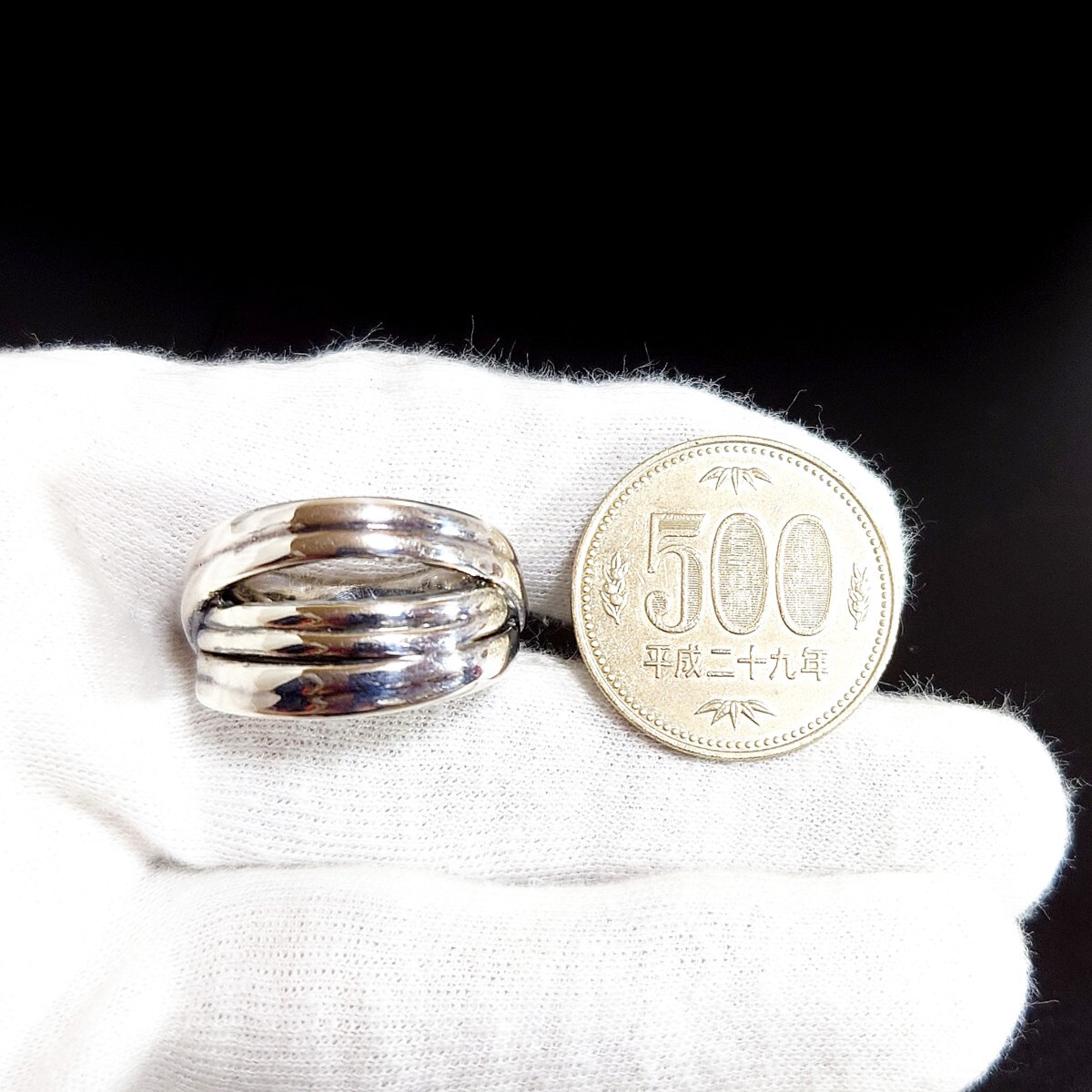 リングは薄く内部は空洞になっていてエア(空気)で銀を膨らませた難しい中空デザインという手間を掛けた職人技術で造られています。