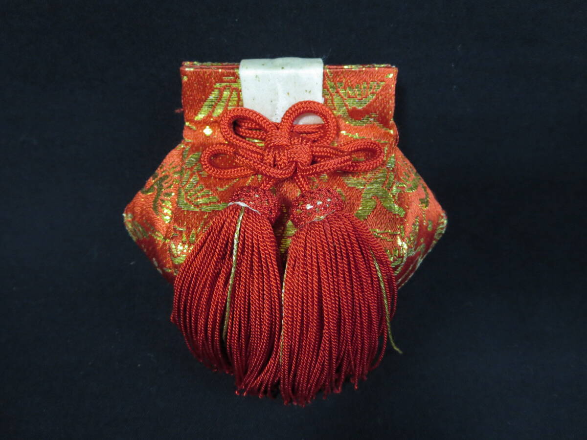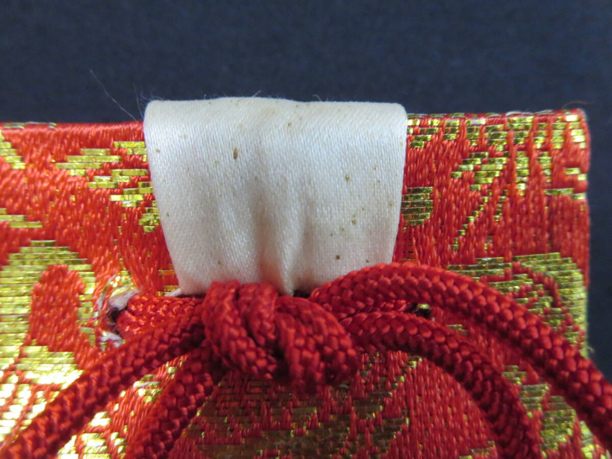 ■お宮参り お守り 宝袋■ サイズ・・・約8x10x6cm(いずれも最大で) 中央上の白い部分にシミがあります。 桐箱入りです。 経年の自宅保管品で、年代物です。 ご了解頂ける方からの、ご入札をお待ちしています。 |