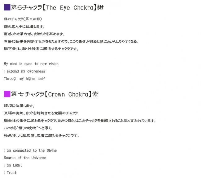 ヨガでは、この7つのチャクラを活性化させて精神と体の機能を高めていきます。