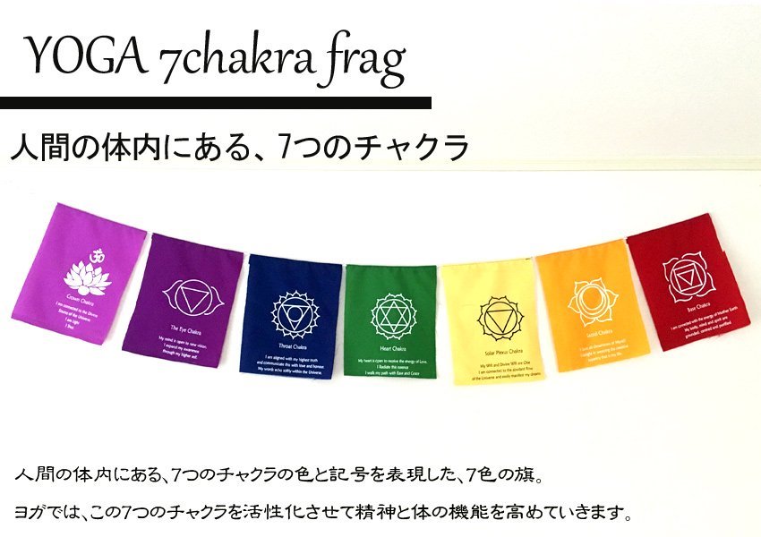 ヨガ 瞑想の為の7つのチャクラを表したフラッグ