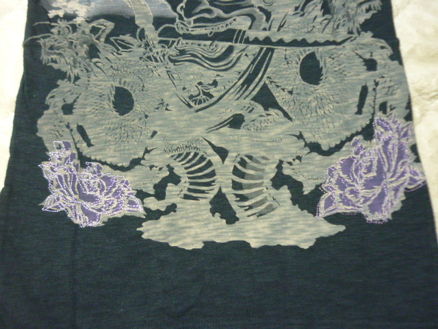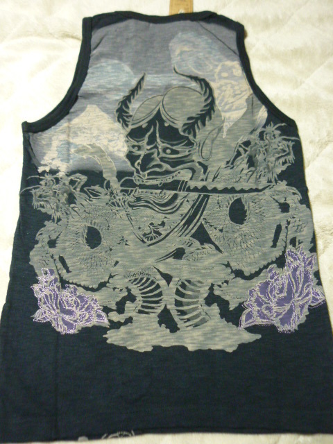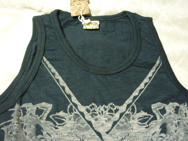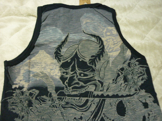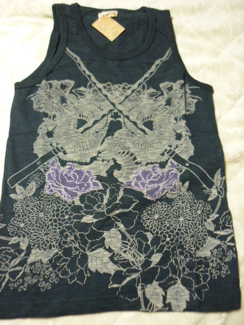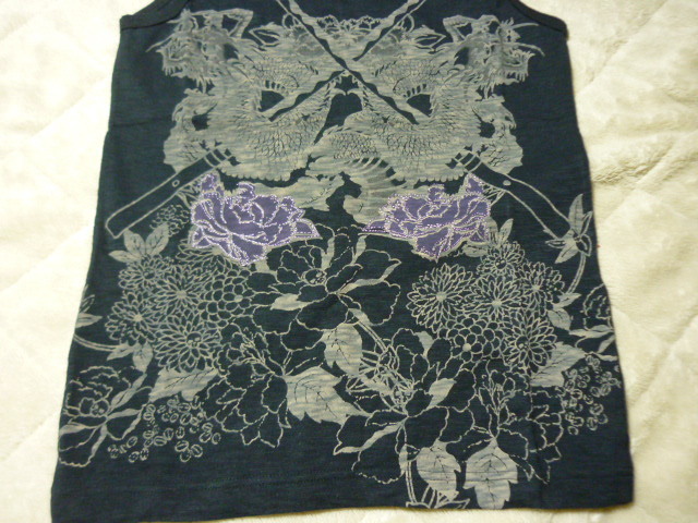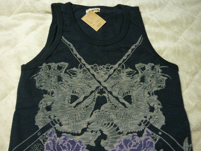 未使用! 和柄タンクトップ 黒 竜 ドラゴン ドクロ スカル アメカジ